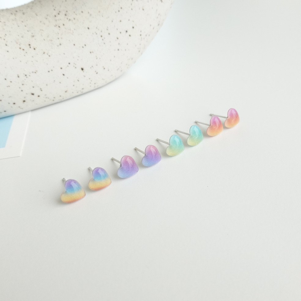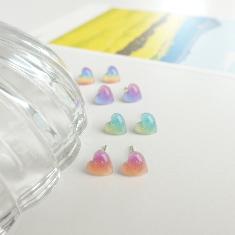 品名:TE3139 그라데이션 하트 귀걸이 ◎※☞颜色:그린, 레인보우, 오렌지, 퍼플 ◎※☞尺寸:FREE ◎※☞材质:腈纶 100% 翻译