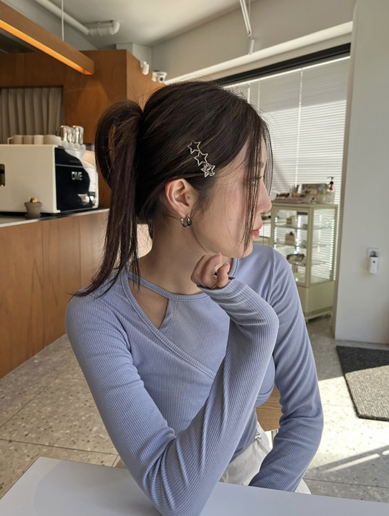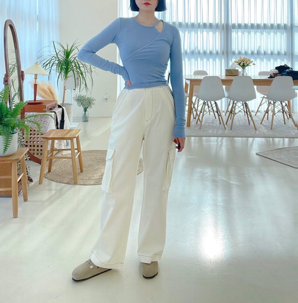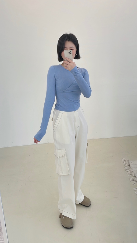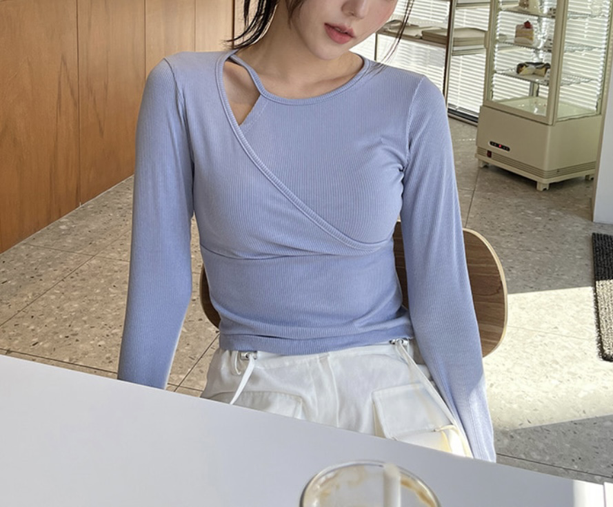 品名:샐리골지티셔츠 ◎※☞颜色:블랙, 블루, 화이트 ◎※☞尺寸:FREE ◎※☞材质:人造纤维 95%,스판 5% 翻译