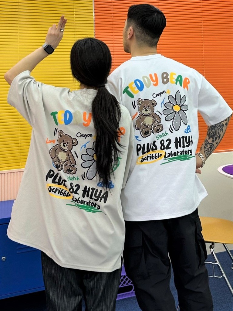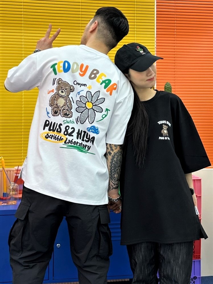 品名:SS))테디베어반팔 ◎※☞颜色:베이지, 블랙, 화이트 ◎※☞尺寸:FREE ◎※☞材质:纯棉 50%,聚酯 45%,스판 5% 翻译