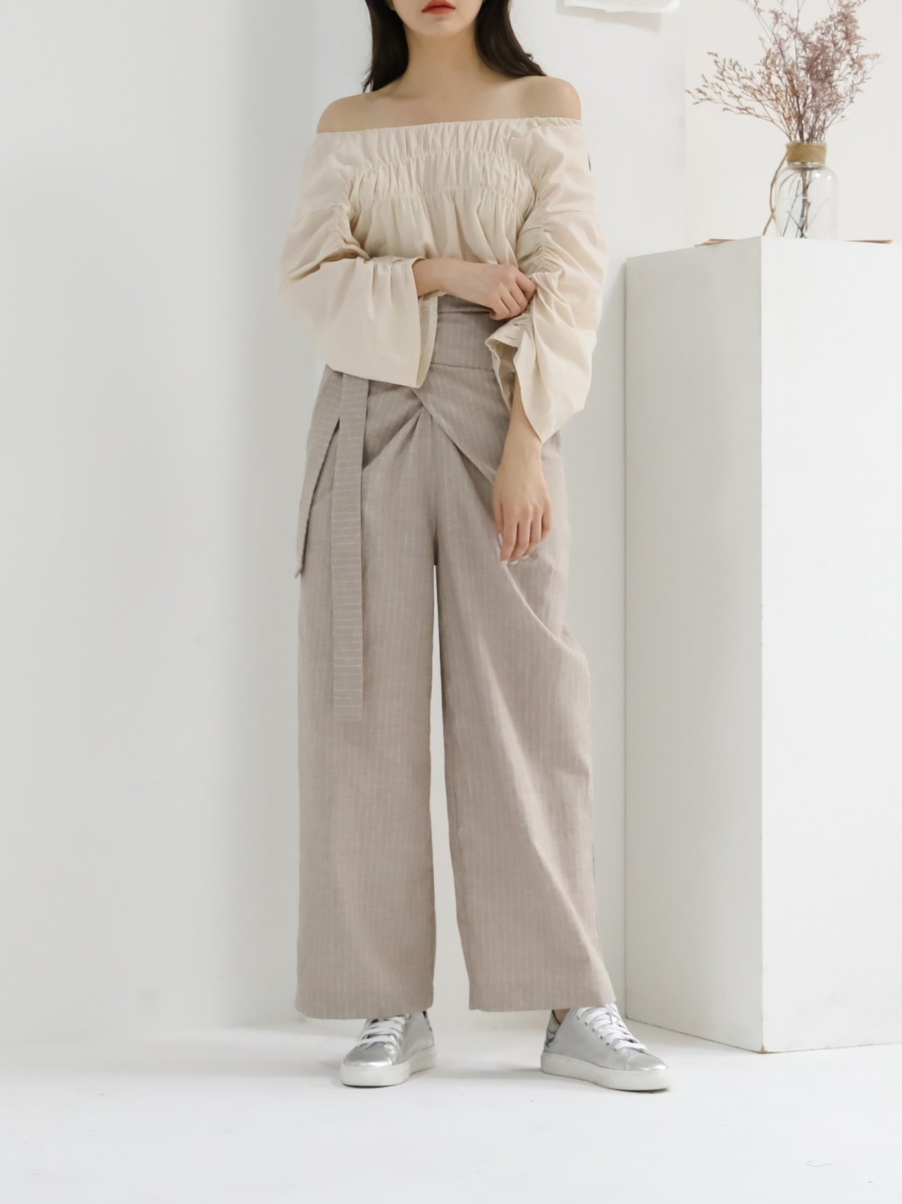 品名:여름땡#) 세일 린넨 스트라이프 랩 팬츠 (베이지만가능) ◎※☞颜色:베이지 ◎※☞尺寸:FREE ◎※☞材质:纯棉 60%,亚麻 40% ◎※☞注意事项:只能干洗,只能手洗,不能手洗,机洗,不能使用漂白剂,不能烘干,不能熨烫,不能曲折