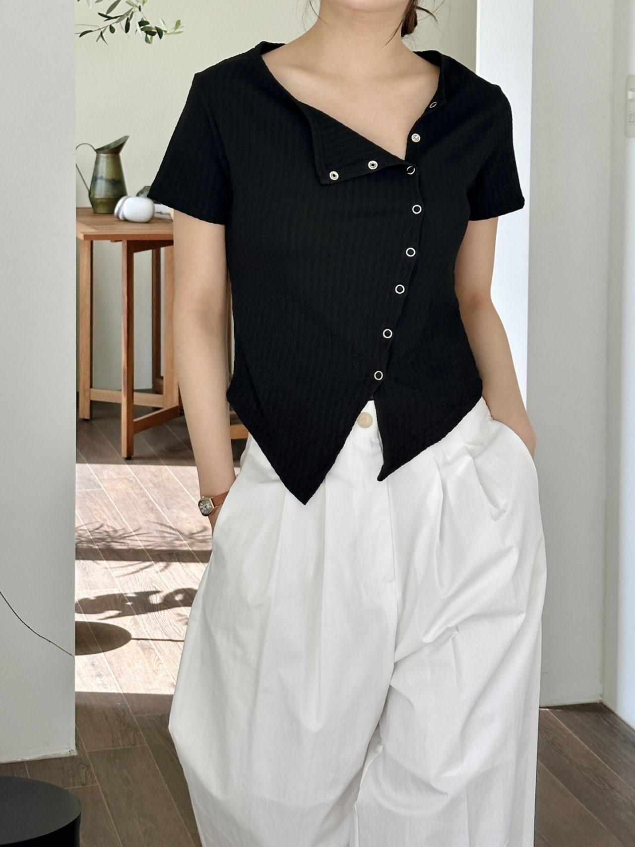 品名:또또가디건(라운드 언발 아일렛 티 신상) ◎※☞颜色:그린, 블랙, 화이트 ◎※☞尺寸:FREE ◎※☞材质:聚酯 100% 翻译