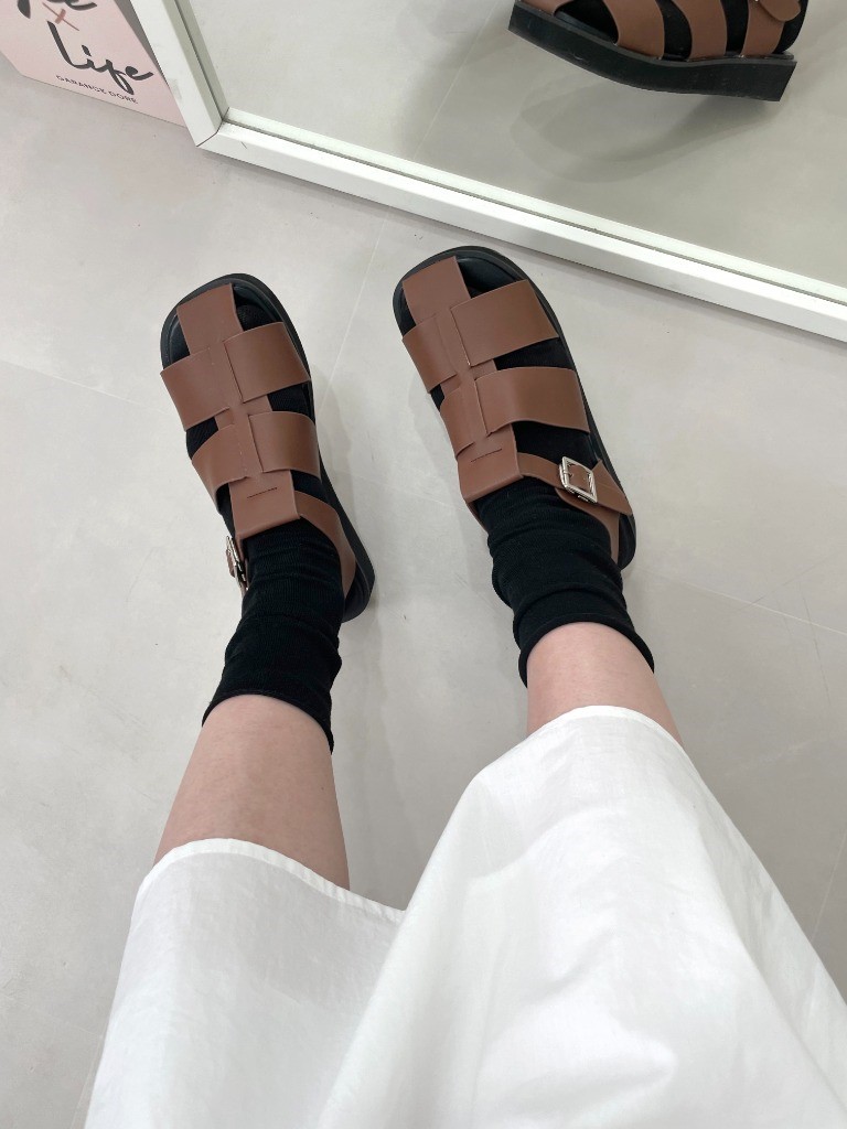 品名:2156 3cm 버클 스트랩 샌들 ◎※☞颜色:브라운, 블랙, 아이보리 ◎※☞尺寸:225, 230, 235, 240, 245, 250 ◎※☞材质:合成皮革 0% 翻译