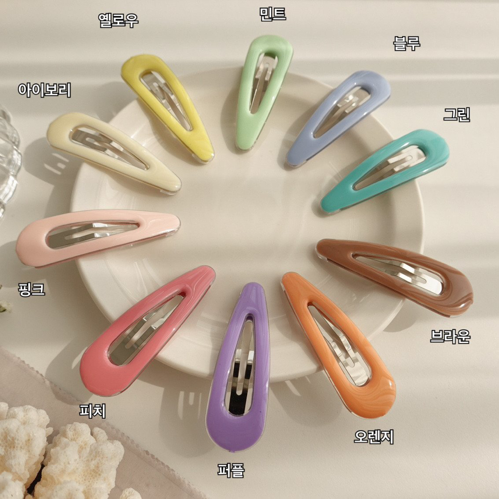 品名:TH3060 비비드 헤어핀 ◎※☞颜色:그린, 민트, 브라운, 블루, 아이보리, 옐로우, 오렌지, 퍼플, 피치, 핑크, 화이트 ◎※☞尺寸:FREE ◎※☞材质:에폭시 100% 翻译