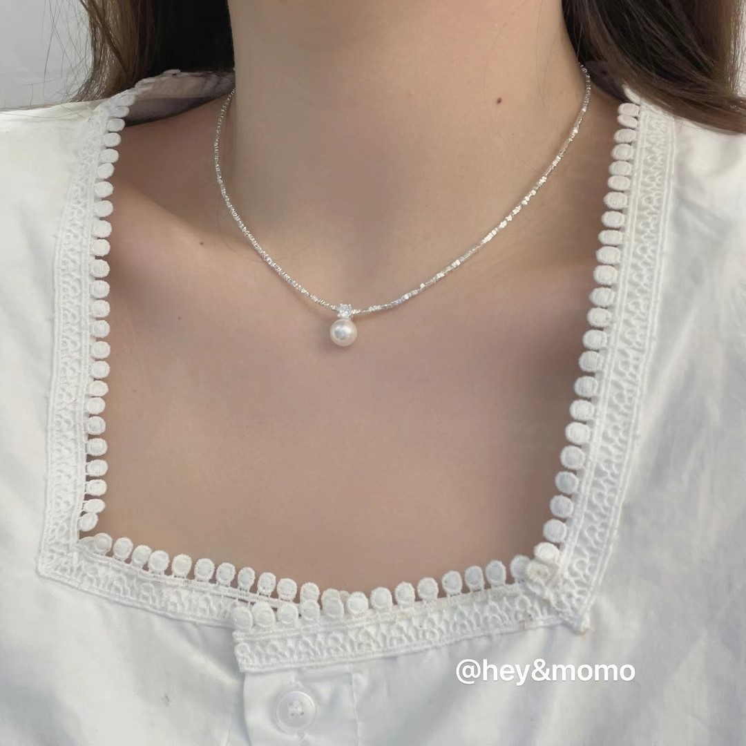 图款 ⚪️925 银 碎银块链条➕施华洛水钻 单颗珍珠 温柔气质款简约项链 27000