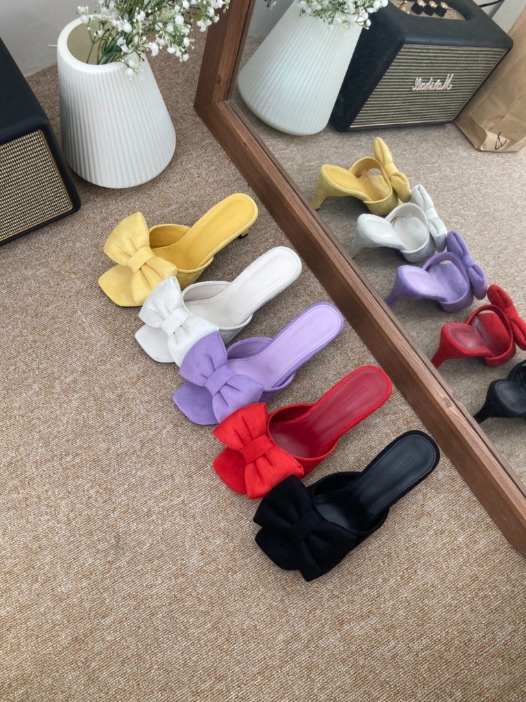 品名:블7114 7cm 스퀘어 리본 뮬 슬리퍼 힐 ◎※☞颜色:레드, 블랙, 아이보리, 옐로우, 퍼플 ◎※☞尺寸:225, 230, 235, 240, 245, 250 ◎※☞材质:合成皮革 0% 翻译
