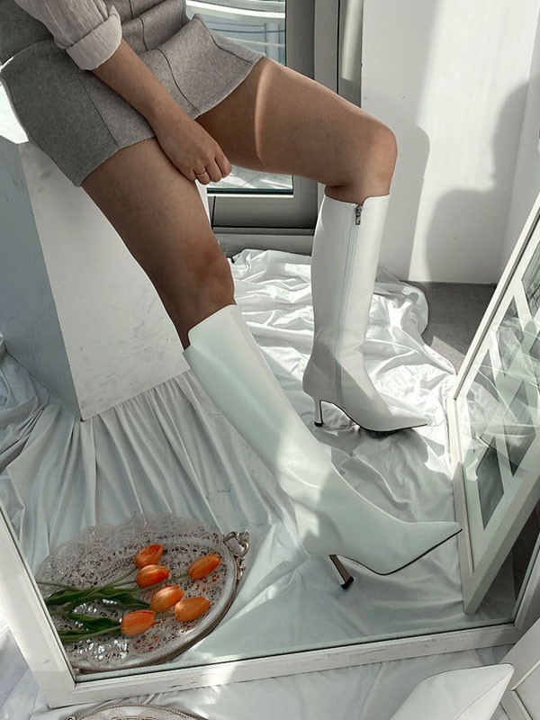 品名:1023 7cm 레더 스틸레토 롱부츠 힐 ◎※☞颜色:블랙, 화이트 ◎※☞尺寸:225, 230, 235, 240, 245, 250 ◎※☞材质:合成皮革 0% 翻译