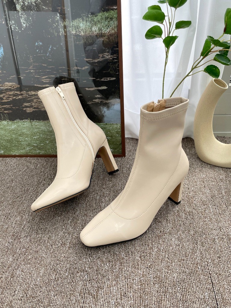 品名:1075 8cm 뾰족 각코 쫀쫀 스판 삭스 앵클부츠 ◎※☞颜色:베이지, 블랙 ◎※☞尺寸:225, 230, 235, 240, 245, 250 ◎※☞材质:合成皮革 0% 翻译