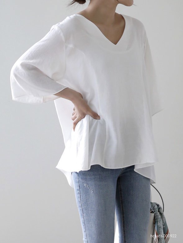 실크처럼 부드러운 레이온 폴리 "린넨"혼방원단으로~ 브이넥의 박시한 A라인 모두 사이즈 가능한 하늘하늘한~블라우스 ~^^