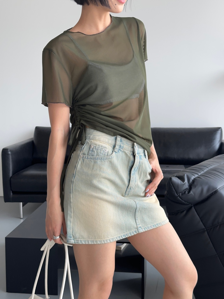 品名:시스루스트링t ◎※☞颜色:블랙, 청, 카키, 흰 ◎※☞尺寸:FREE ◎※☞材质:聚酯 95%,스판 5% ◎※☞注意事项:只能干洗,只能手洗,不能手洗,机洗,不能使用漂白剂,不能烘干,不能熨烫,不能曲折