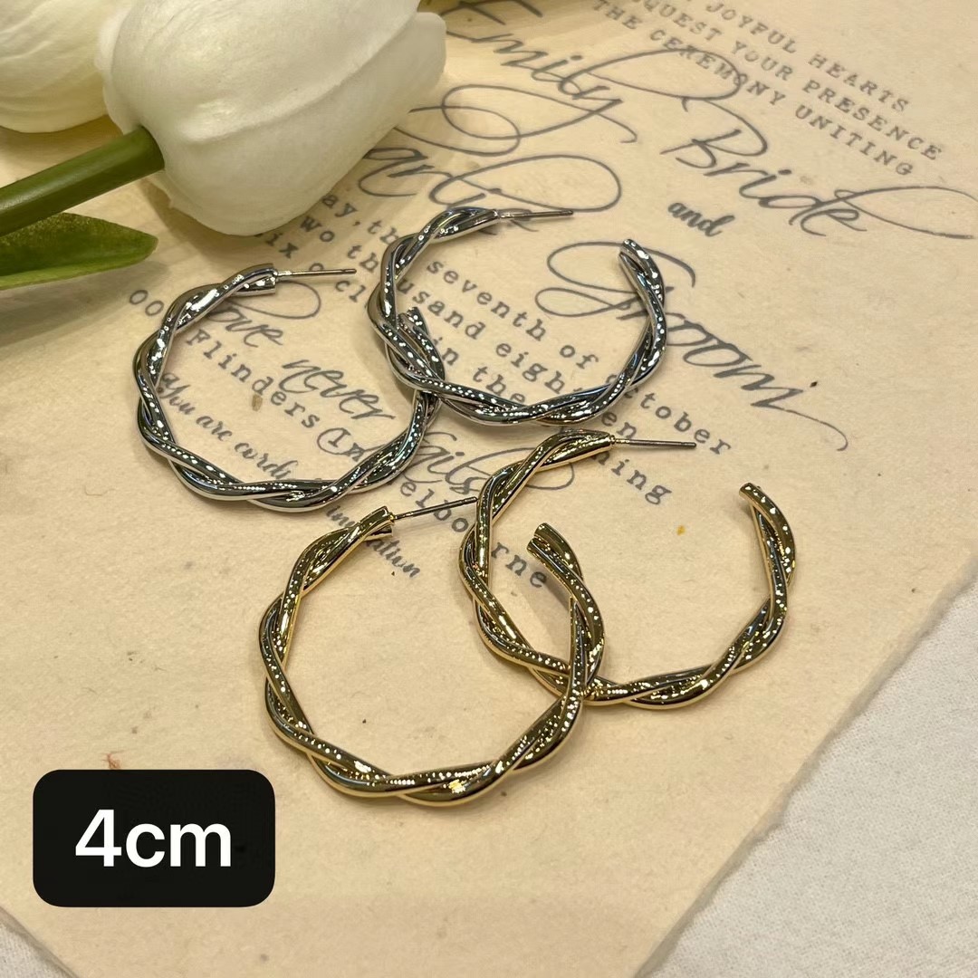 經典金屬簡約風麻花耳圈~金銀兩色3種大小