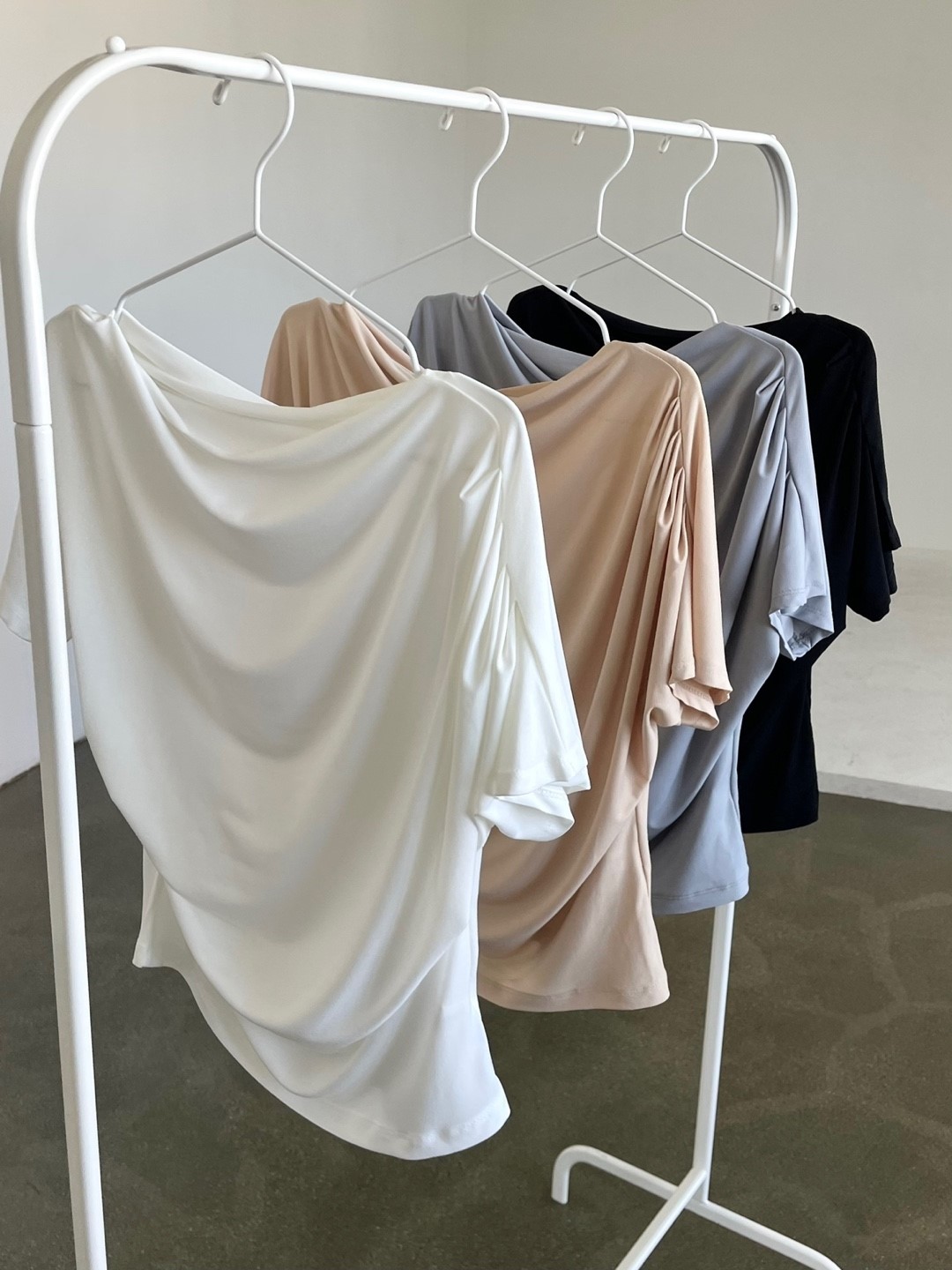品名:오프 셔링 드레이프 티셔츠T ◎※☞颜色:베이지, 블랙, 소라, 아이보리 ◎※☞尺寸:FREE ◎※☞材质:스판 5%,聚酯 95% ◎※☞注意事项:只能干洗,只能手洗,不能手洗,机洗,不能使用漂白剂,不能烘干,不能熨烫,不能曲折