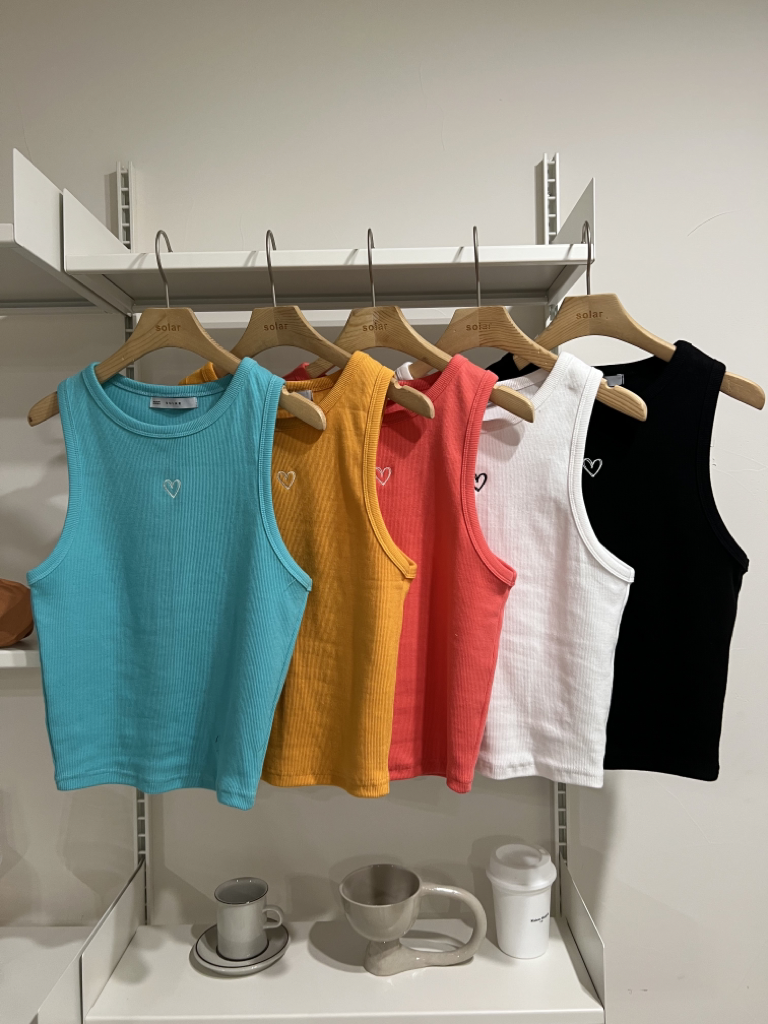 品名:하트자수나시 ◎※☞颜色:검정, 노랑, 소라, 핑크, 화이트 ◎※☞尺寸:FREE ◎※☞材质:纯棉 100% 翻译