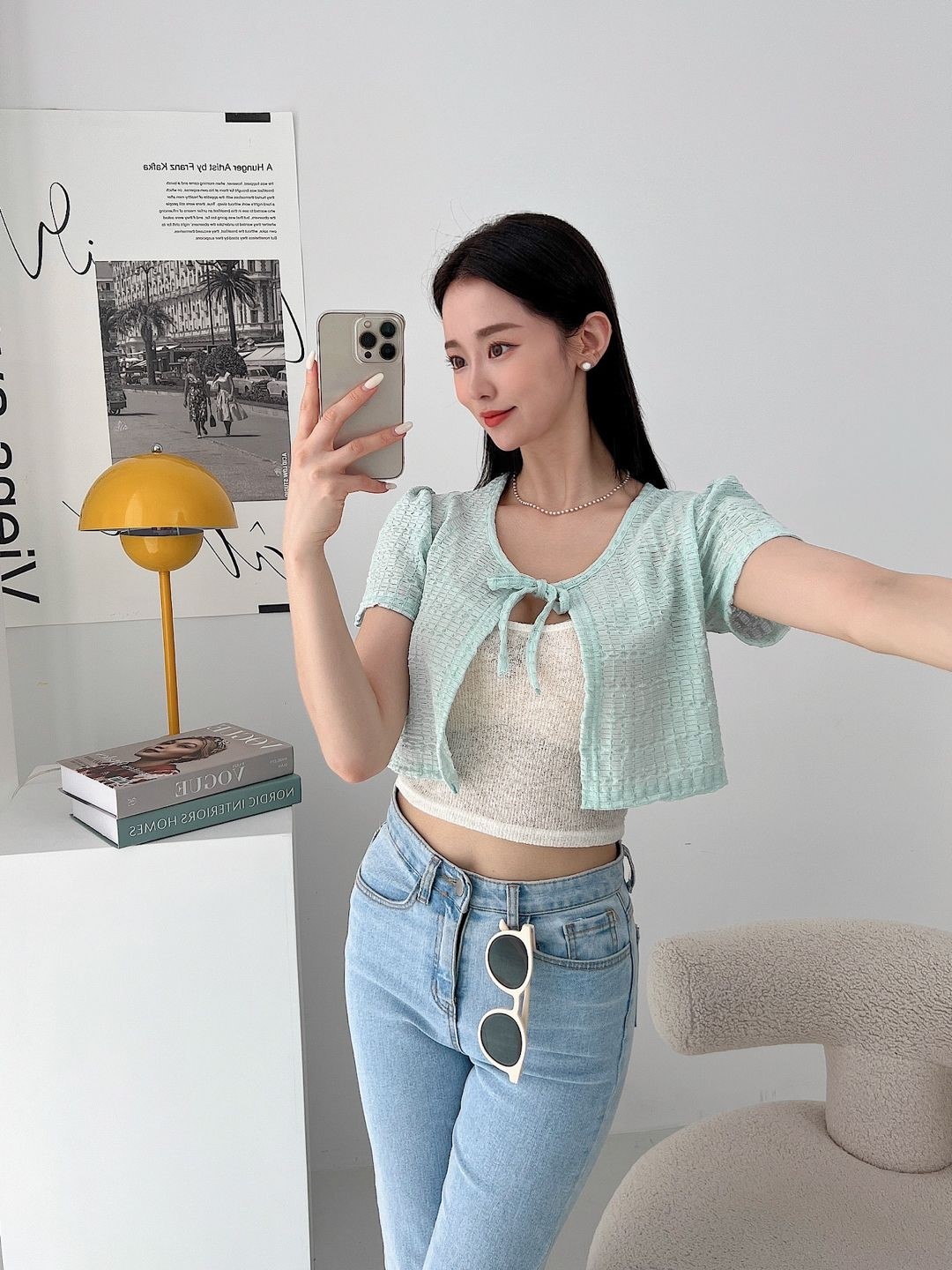 品名:봉봉가디건 (4color) ◎※☞颜色:민트, 블랙, 아이보리, 핑크 ◎※☞尺寸:FREE ◎※☞材质:聚酯 100% 翻译