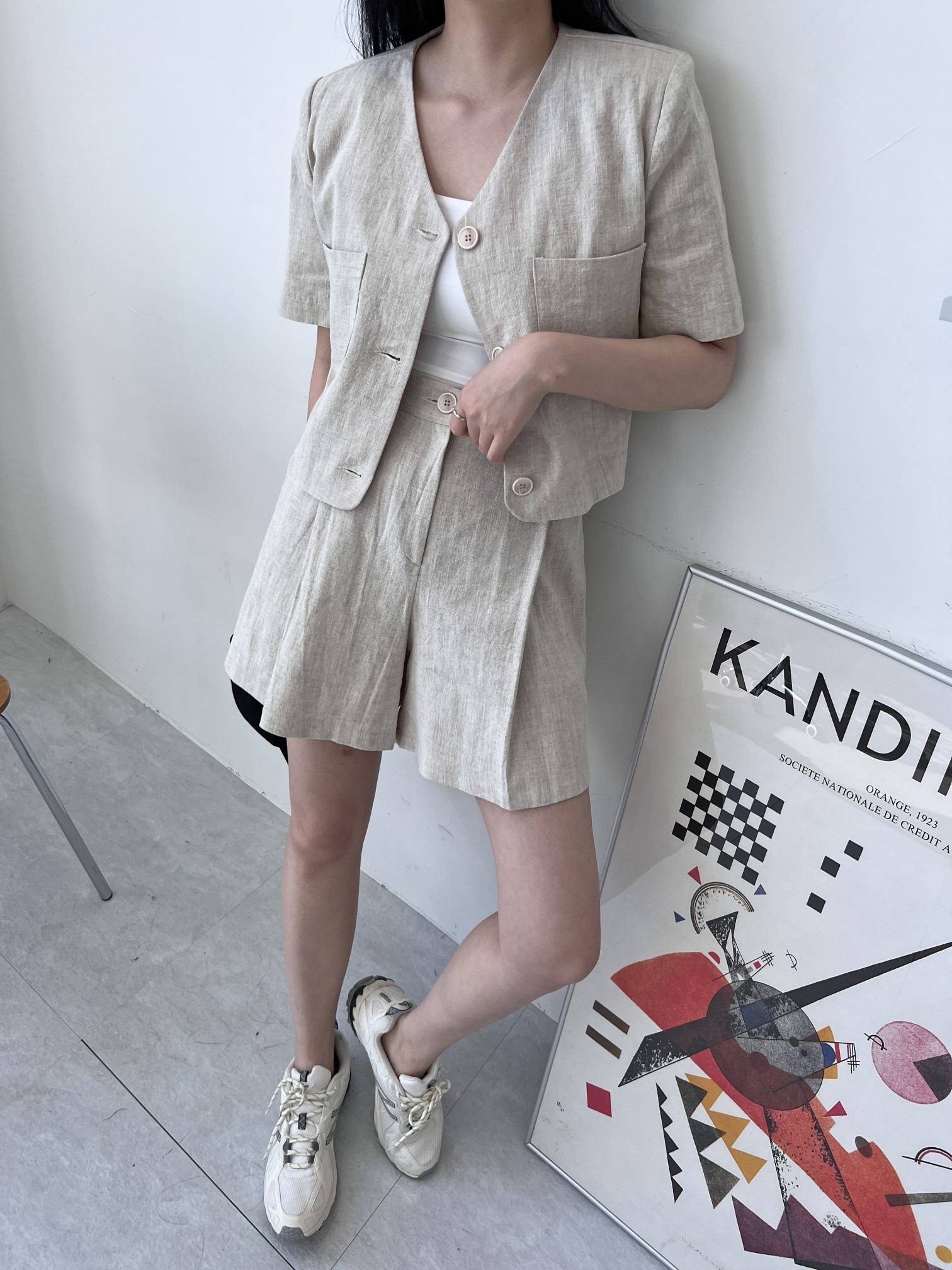 品名:라미셋업 ◎※☞颜色:블랙, 오트밀 ◎※☞尺寸:FREE ◎※☞材质:亚麻 100% ◎※☞注意事项:只能干洗,只能手洗,不能手洗,机洗,不能使用漂白剂,不能烘干,不能熨烫,不能曲折 翻译