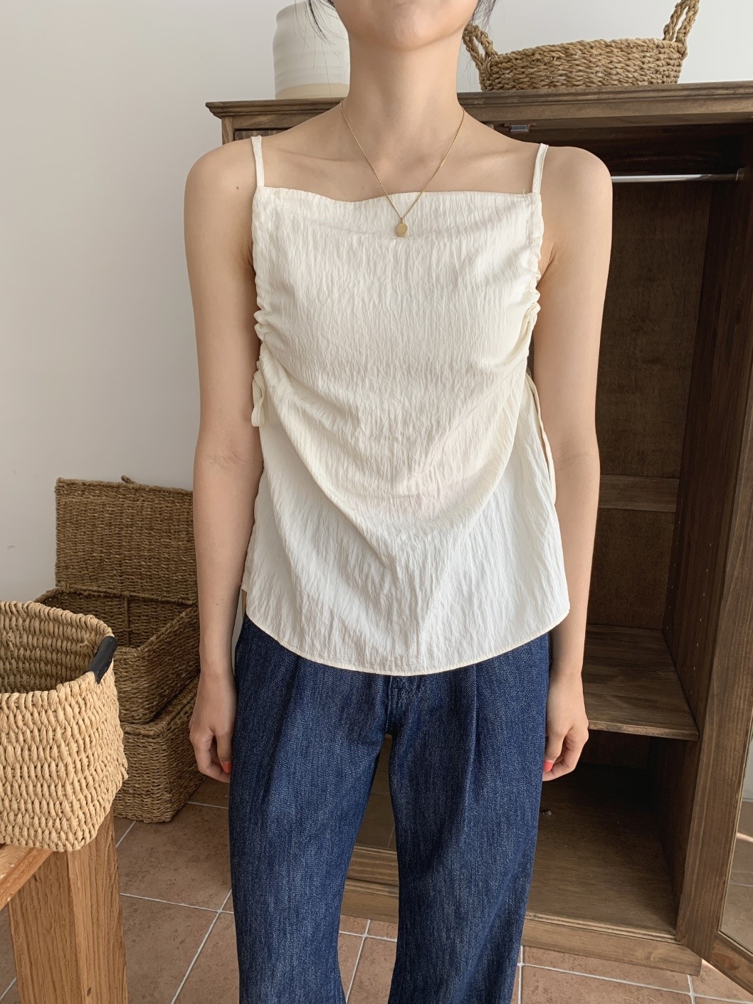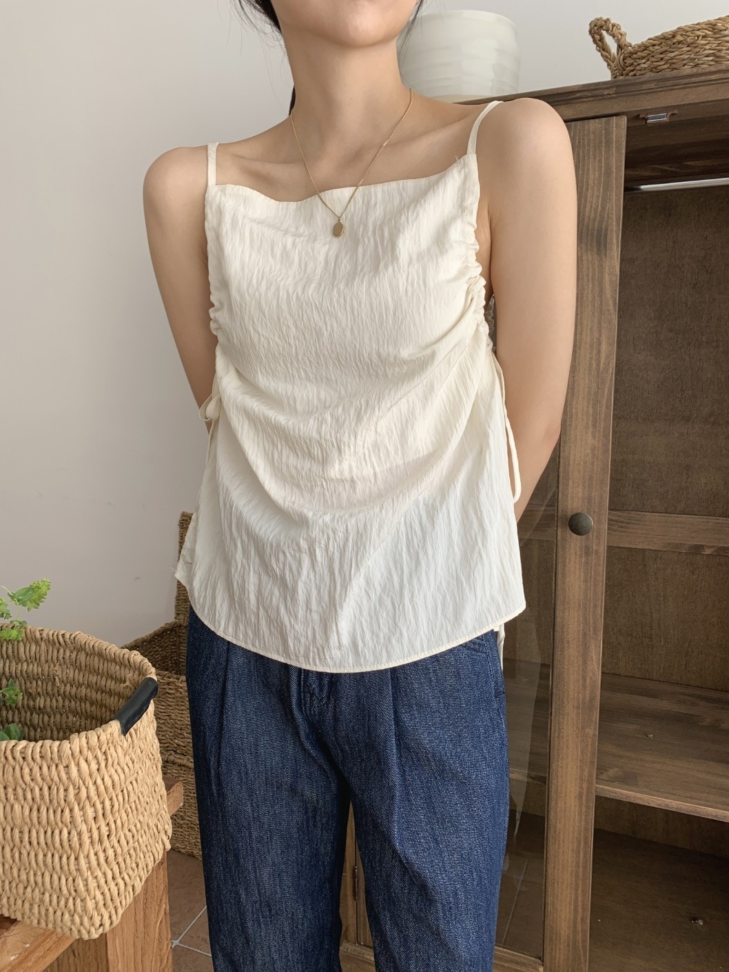 品名:스트링 나일론 나시 ◎※☞颜色:블랙, 아이보리 ◎※☞尺寸:FREE ◎※☞材质:비스코스 86%,尼龙 14% 翻译