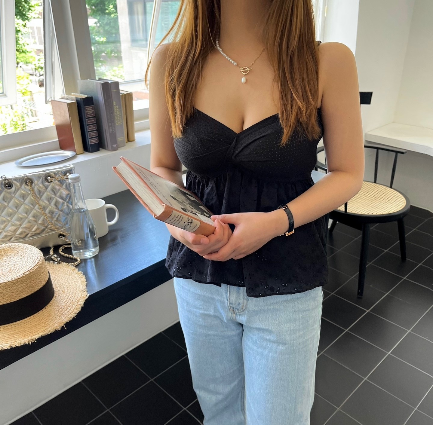 品名:니트펀칭탑 ◎※☞颜色:블랙, 아이 ◎※☞尺寸:FREE ◎※☞材质:聚酯 100% 翻译