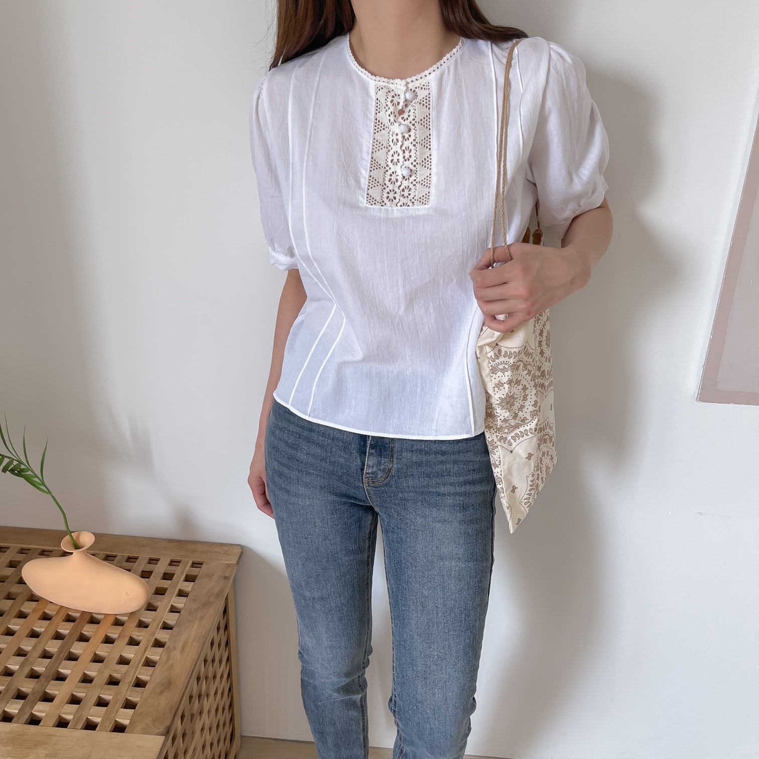 品名:띵크 블라우스 #레이스 #배색 #단추 #퍼프 #소매 #라운드 #브이넥 #국내제작 #핀탁 #핀턱 #데일리 #카라 #세일러 #세라 #트위드 #스퀘어 #자수 #나염 #캐주얼 #러블리 #엠보 #펀칭 #셔츠 #블라 #남방 #NB #SH #BL #T #맨투맨 #가오리 #박스 #MTM #시스루 #봄 #여름 #가을 #겨울 #신상 #조거 #셀럽 #진주 #모티브 #반팔 #5부 #7부 #9부 #긴팔 #스트링 #밴딩 #나일론 #면 #와플 #나염 #꽃자수 ◎※☞颜色:크림