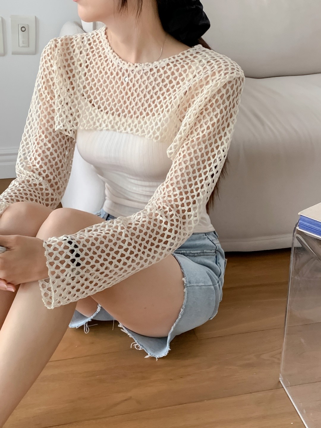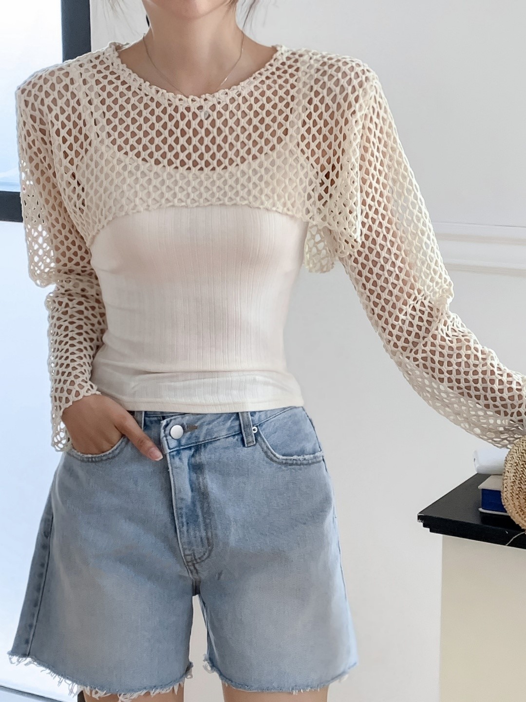 品名:네트 망사 세트 ◎※☞颜色:베이지, 블랙, 소라, 아이보리 ◎※☞尺寸:FREE ◎※☞材质:聚酯 100% 翻译
