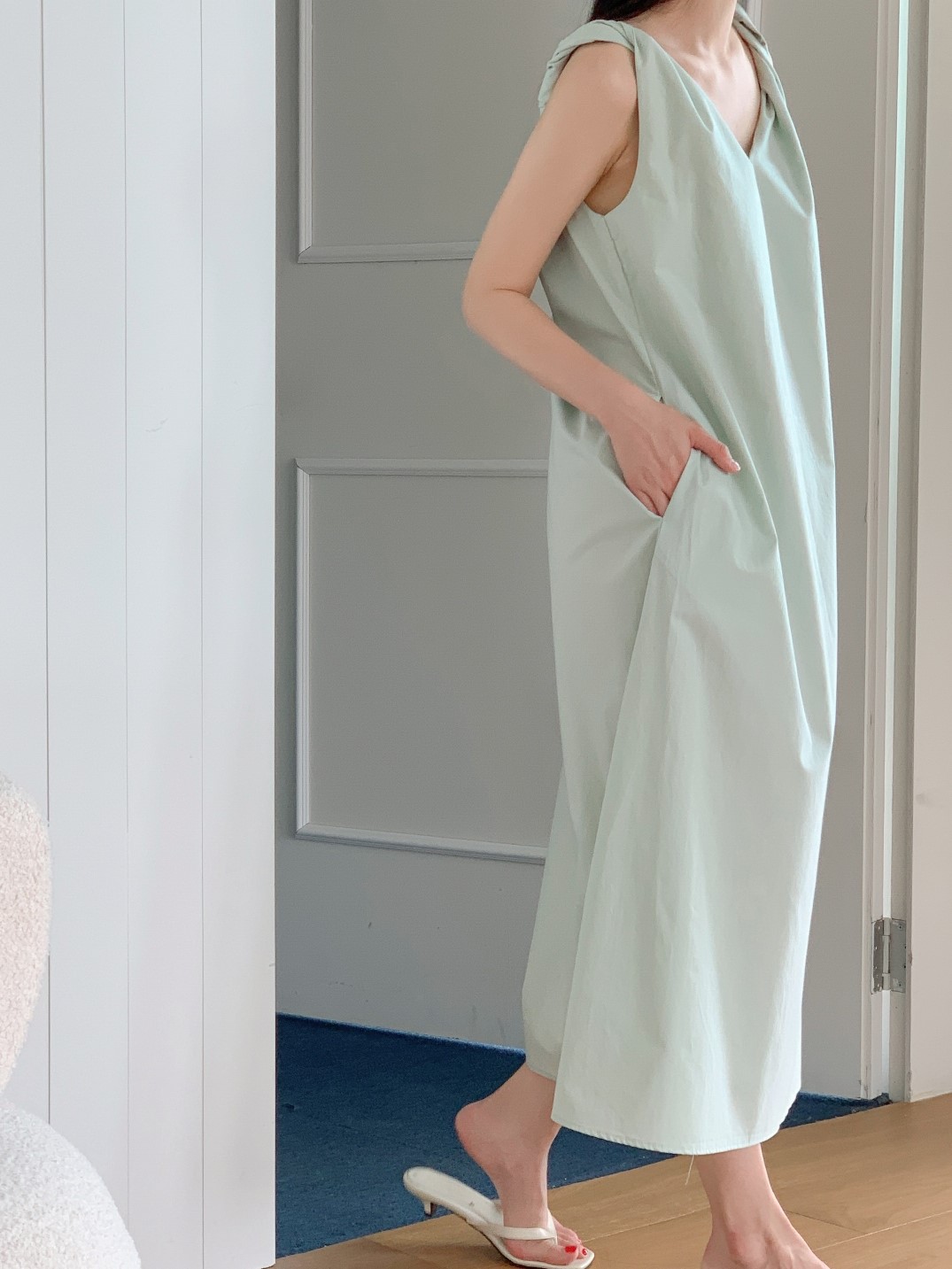 品名:[23년 여름 신상] 트위스트 숄더 원피스 (허리끈 포함) ◎※☞颜色:민트, 블랙 ◎※☞尺寸:FREE ◎※☞材质:纯棉 100% ◎※☞注意事项:只能干洗,只能手洗,不能手洗,机洗,不能使用漂白剂,不能烘干,不能熨烫,不能曲折