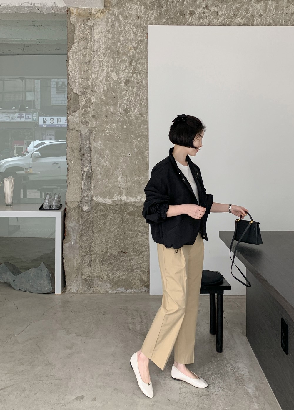 品名:똑딱이 밑단 스트링 바람막이 ◎※☞颜色:블랙, 아이보리 ◎※☞尺寸:FREE ◎※☞材质:尼龙 100% ◎※☞注意事项:只能干洗,只能手洗,不能手洗,机洗,不能使用漂白剂,不能烘干,不能熨烫,不能曲折 翻译