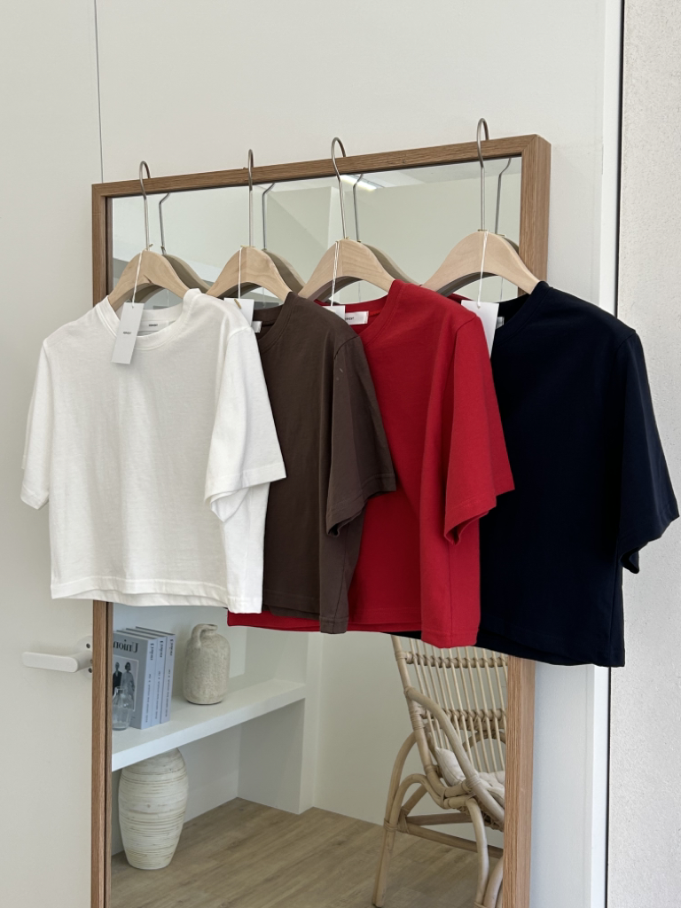 品名:크롭반팔티 ◎※☞颜色:네이비, 레드, 브라운, 아이 ◎※☞尺寸:FREE ◎※☞材质:纯棉 100% 翻译