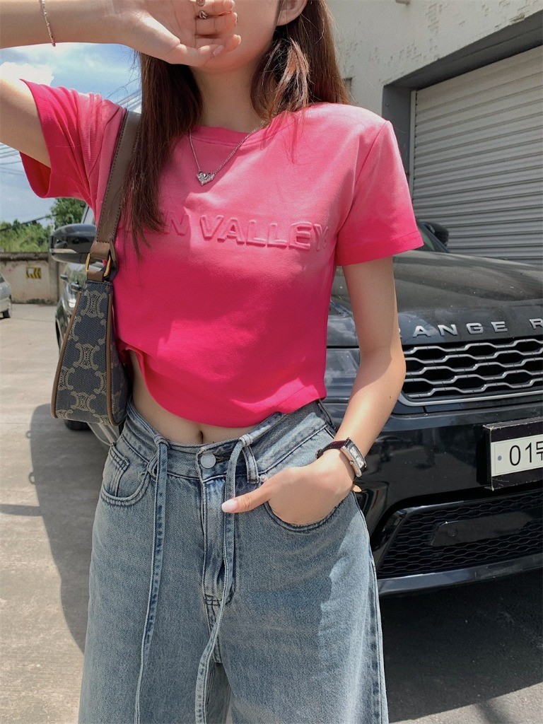 品名:빈티지 크롭 반팔 ◎※☞颜色:블루, 핑크 ◎※☞尺寸:FREE ◎※☞材质:纯棉 100% 翻译