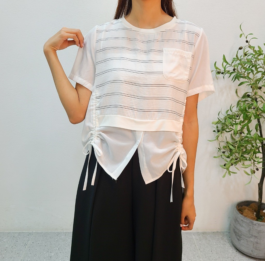 品名:줄지포켓스트링블라우스 ◎※☞颜色:블랙, 핑크, 화이트 ◎※☞尺寸:FREE ◎※☞材质:纯棉 50%,聚酯 50% ◎※☞注意事项:只能干洗,只能手洗,不能手洗,机洗,不能使用漂白剂,不能烘干,不能熨烫,不能曲折