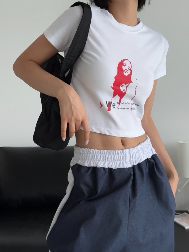 品名:우먼크롭티 ◎※☞颜色:네이비, 아이 ◎※☞尺寸:FREE ◎※☞材质:문의 100% 翻译