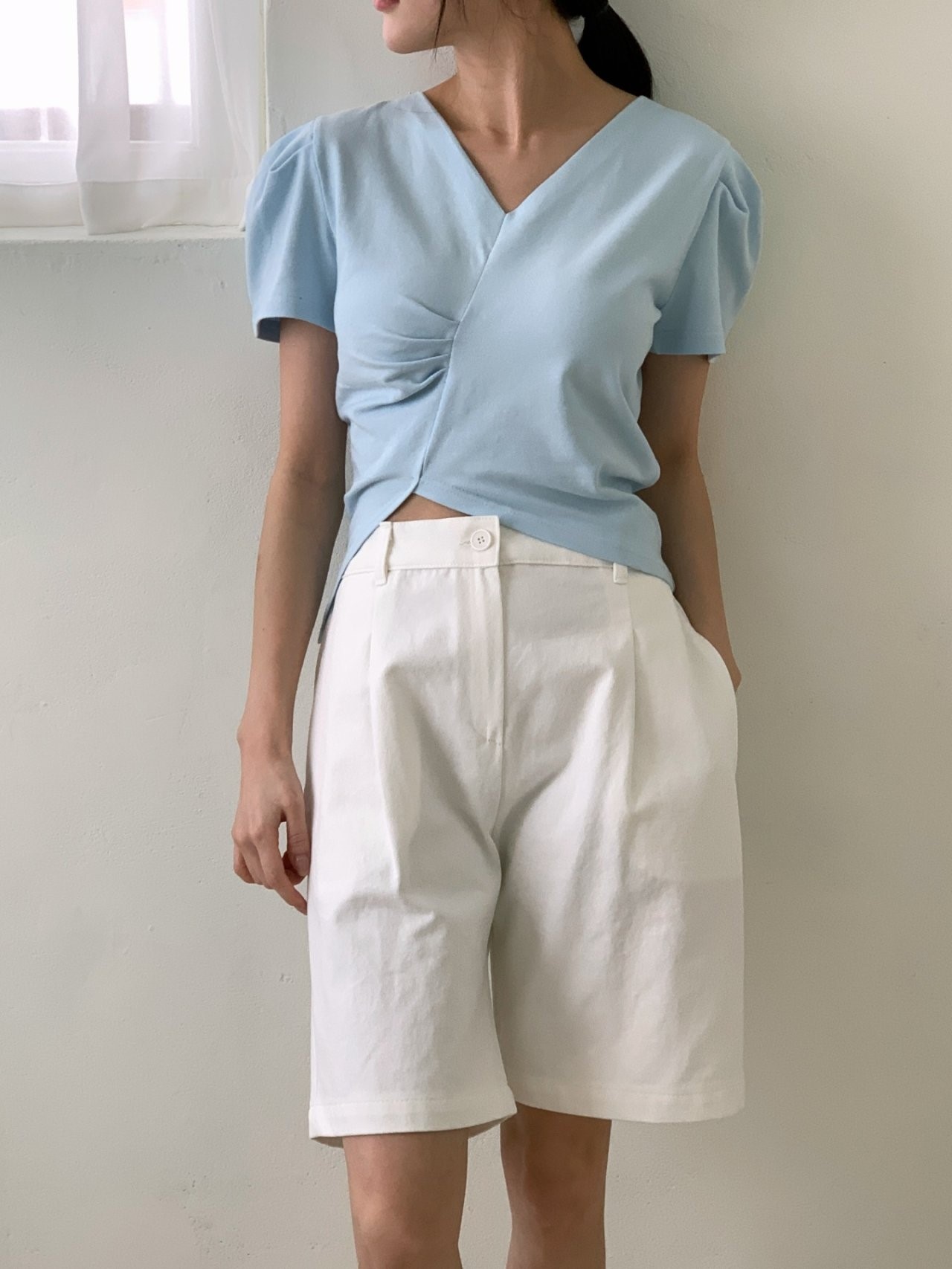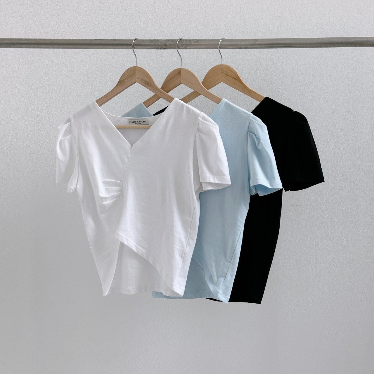 品名:쿠키티(브이넥 언발 셔링 퍼프 무지 반팔 신상 ) ◎※☞颜色:블랙, 블루, 화이트 ◎※☞尺寸:FREE ◎※☞材质:纯棉 100% ◎※☞注意事项:只能干洗,只能手洗,不能手洗,机洗,不能使用漂白剂,不能烘干,不能熨烫,不能曲折