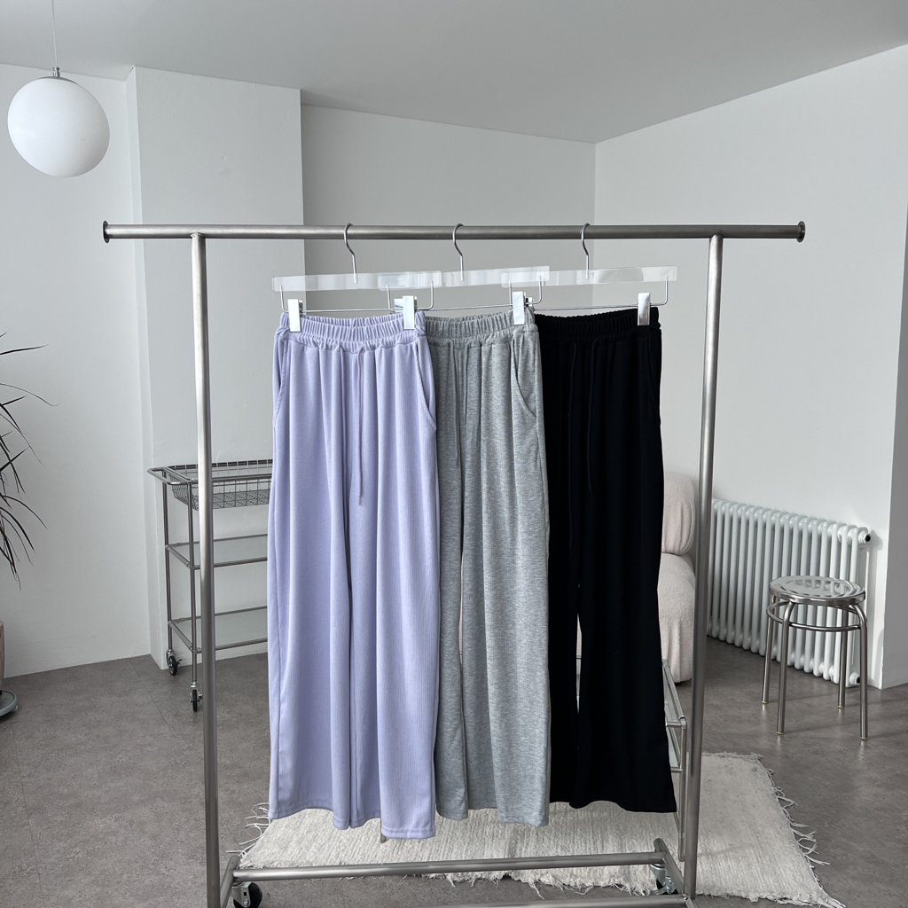 品名:칼라추가 ) 재진행 골지 통 바지 와이드 팬츠 ◎※☞颜色:검정, 라일락, 메란지 ◎※☞尺寸:FREE ◎※☞材质:聚酯 58%,纯棉 35%,스판 7% 翻译