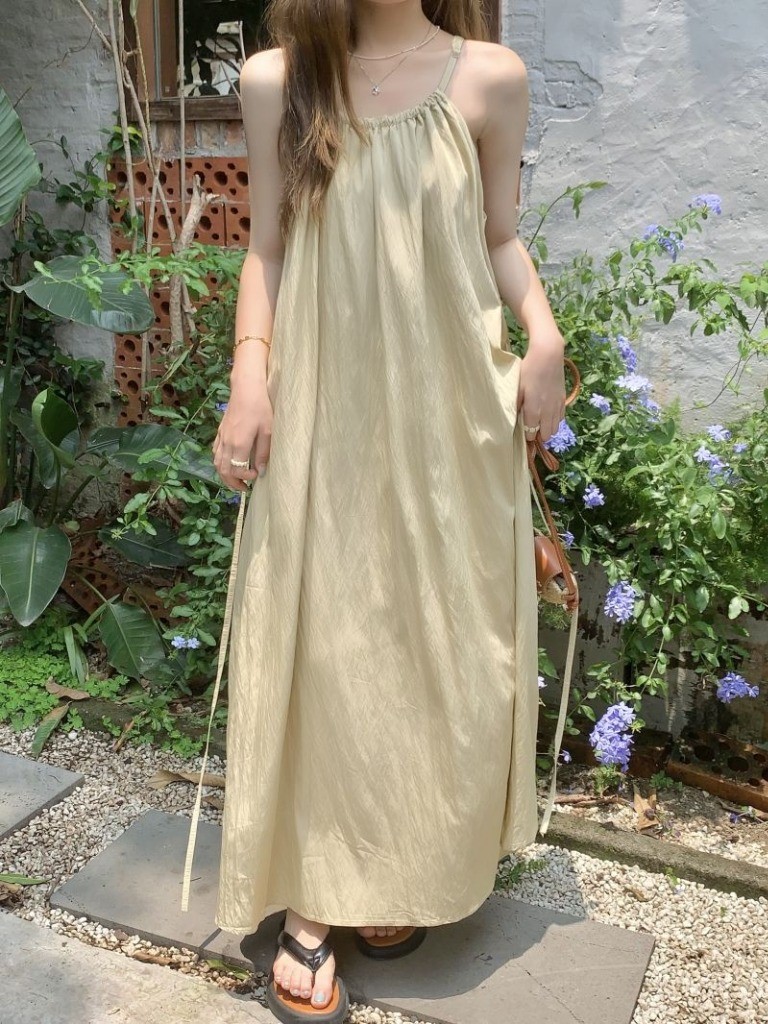 品名:끈나시 롱 원피스 ◎※☞颜色:베이지, 블랙 ◎※☞尺寸:FREE ◎※☞材质:纯棉 100% 翻译
