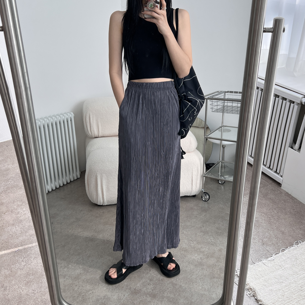 品名:주름 롱 스커트 밴딩 퍼켓 ◎※☞颜色:검정, 먹색, 핑크 ◎※☞尺寸:FREE ◎※☞材质:聚酯 100% 翻译