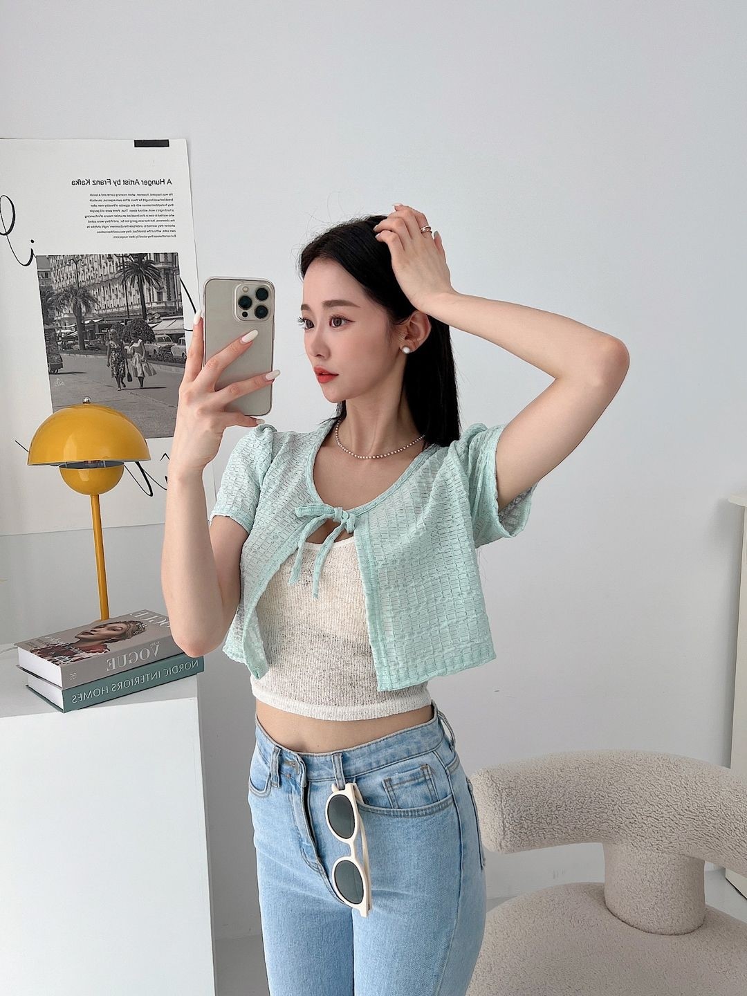 品名:봉봉가디건 (4color) ◎※☞颜色:민트, 블랙, 아이보리, 핑크 ◎※☞尺寸:FREE ◎※☞材质:聚酯 100% 翻译