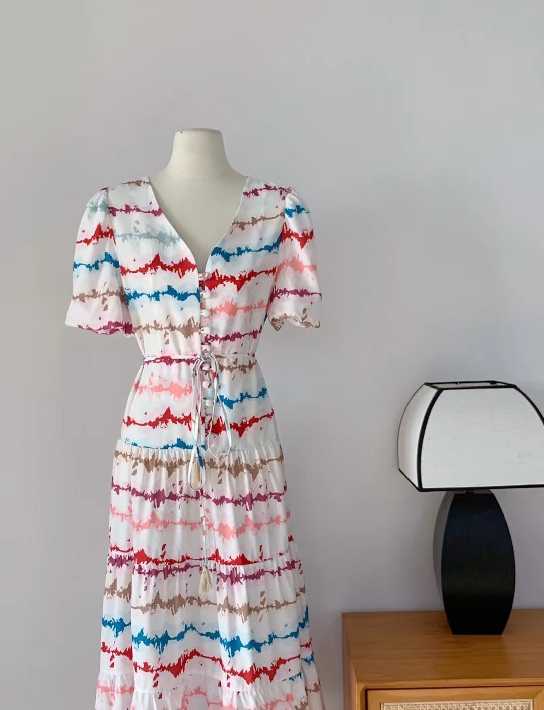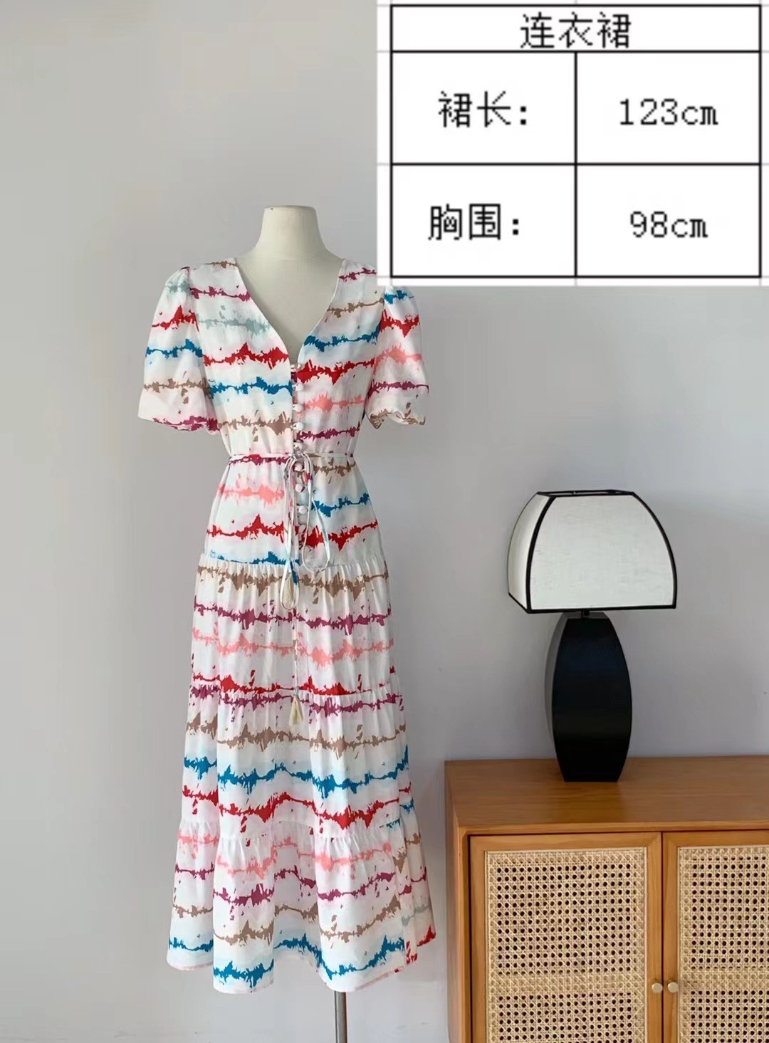 品名:New)썸머 웨이브 원피스 ◎※☞颜色:나염 ◎※☞尺寸:FREE ◎※☞材质:聚酯 100% ◎※☞注意事项:只能干洗,只能手洗,不能手洗,机洗,不能使用漂白剂,不能烘干,不能熨烫,不能曲折 翻译