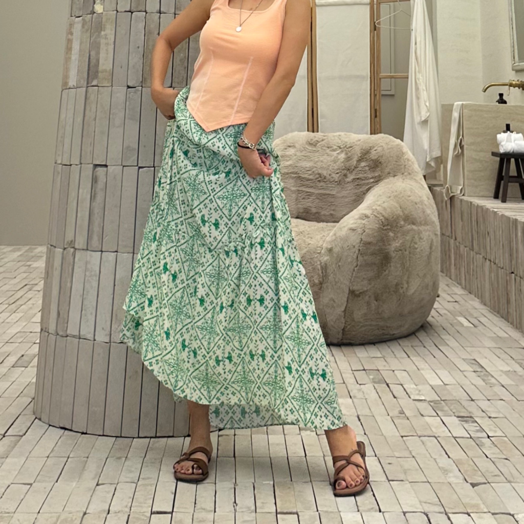 品名:프린팅 프릴 캉캉 롱 스커트 (바캉스 휴가룩) ◎※☞颜色:그린, 블랙, 오렌지 ◎※☞尺寸:FREE ◎※☞材质:人造纤维 100% ◎※☞注意事项:只能干洗,只能手洗,不能手洗,机洗,不能使用漂白剂,不能烘干,不能熨烫,不能曲折