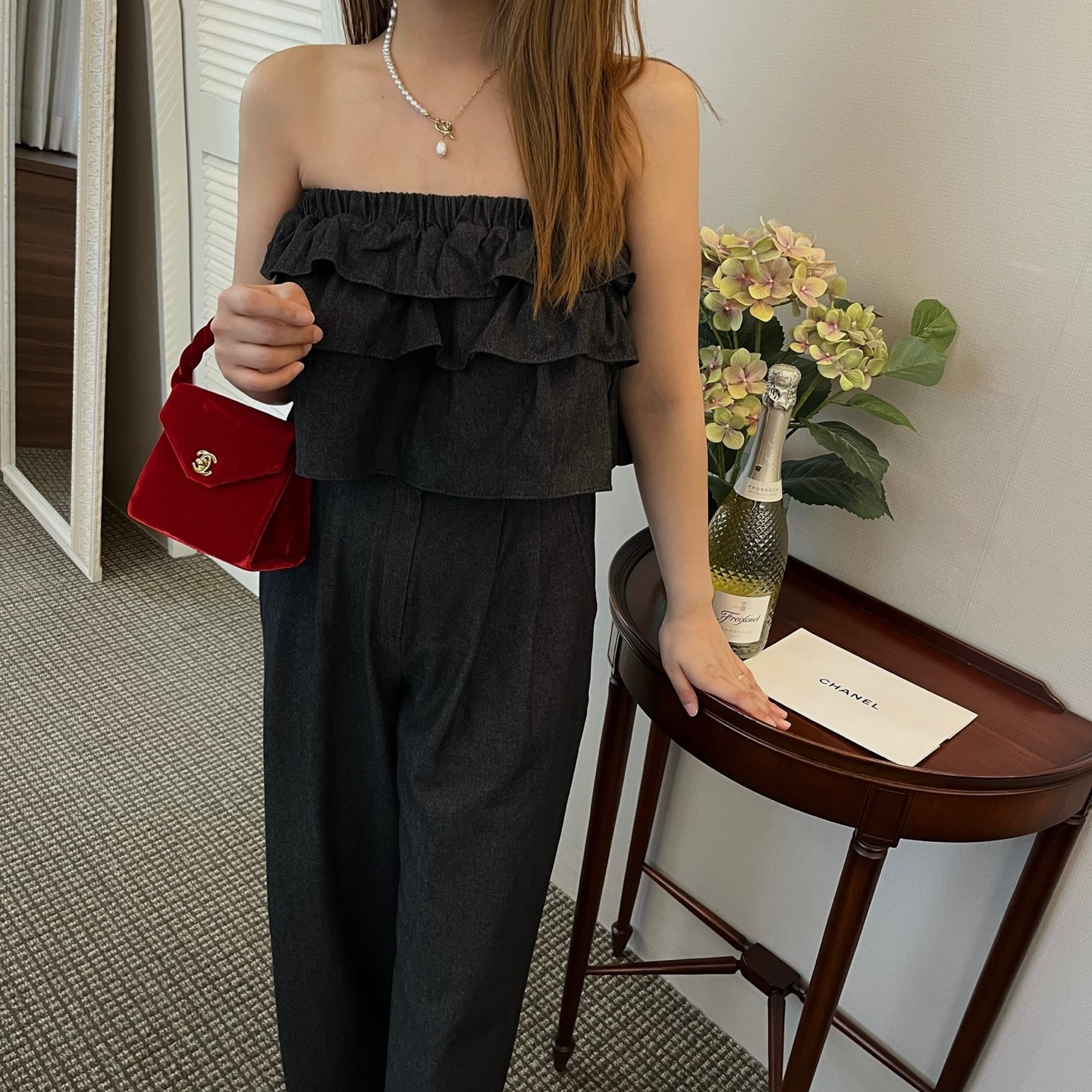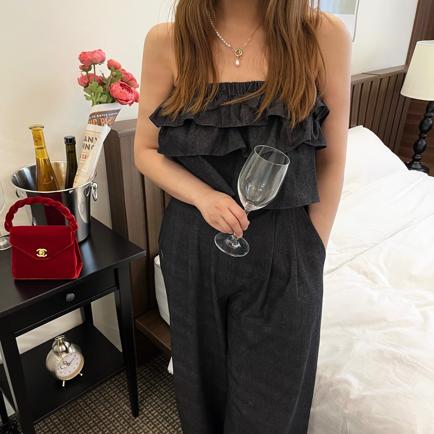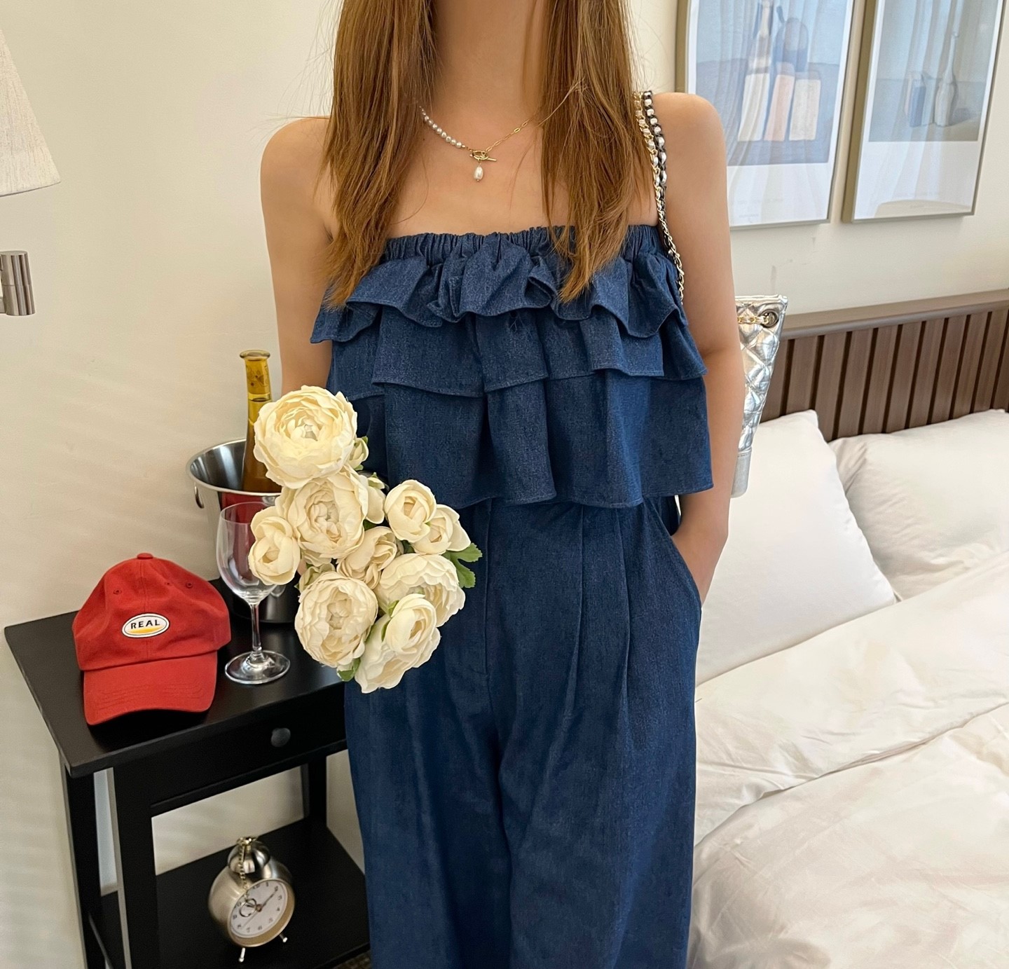品名:잭팟청프릴탑 ◎※☞颜色:중청, 흑청 ◎※☞尺寸:FREE ◎※☞材质:纯棉 100% 翻译