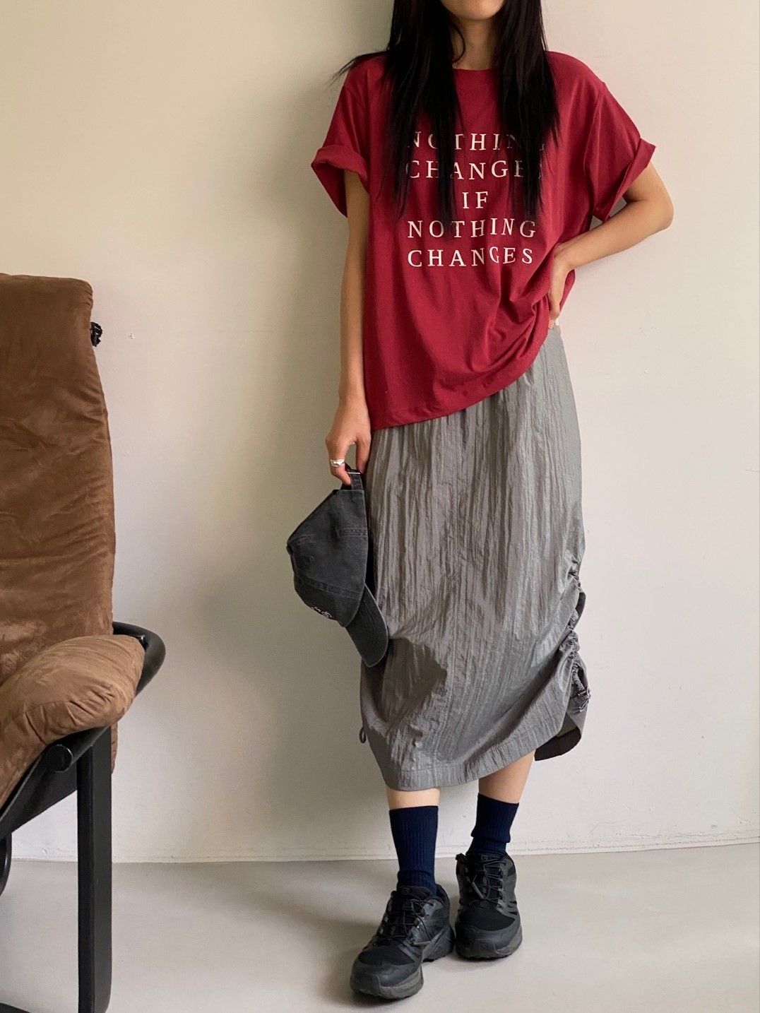 品名:체인지나염T ◎※☞颜色:네이비, 레드, 브라운, 화이트 ◎※☞尺寸:FREE ◎※☞材质:纯棉 100% 翻译