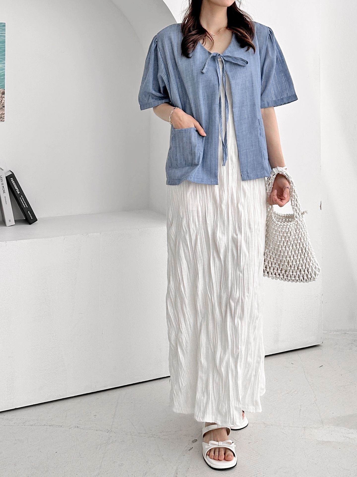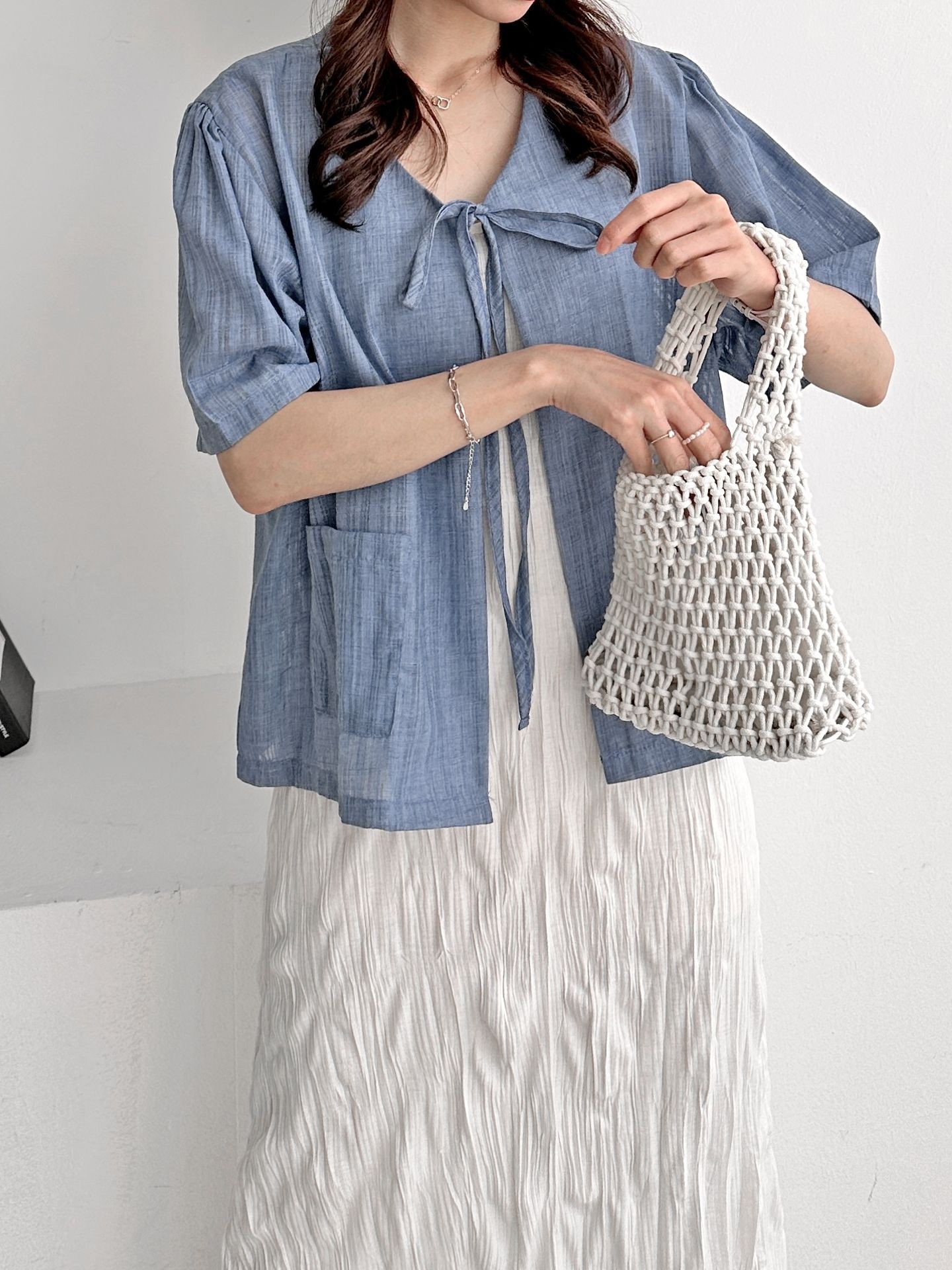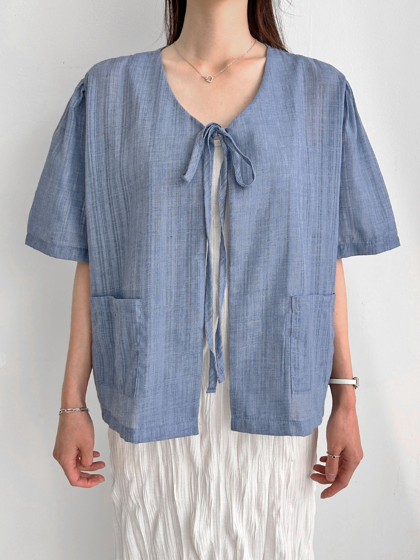 品名:포켓 반팔 가디건 ◎※☞颜色:CREAM, 네이비, 블루 ◎※☞尺寸:FREE ◎※☞材质:纯棉 100% ◎※☞注意事项:只能干洗,只能手洗,不能手洗,机洗,不能使用漂白剂,不能烘干,不能熨烫,不能曲折 翻译