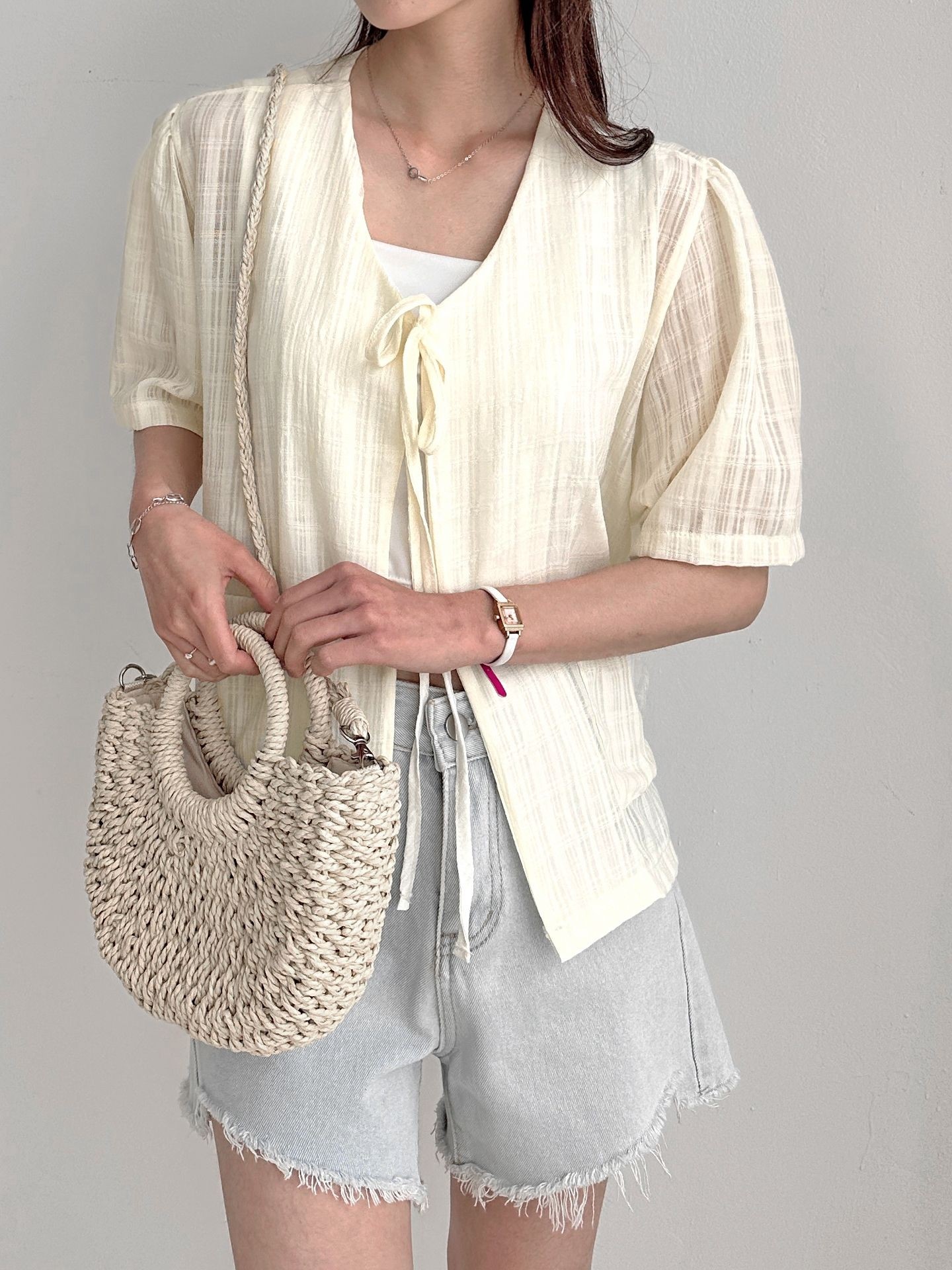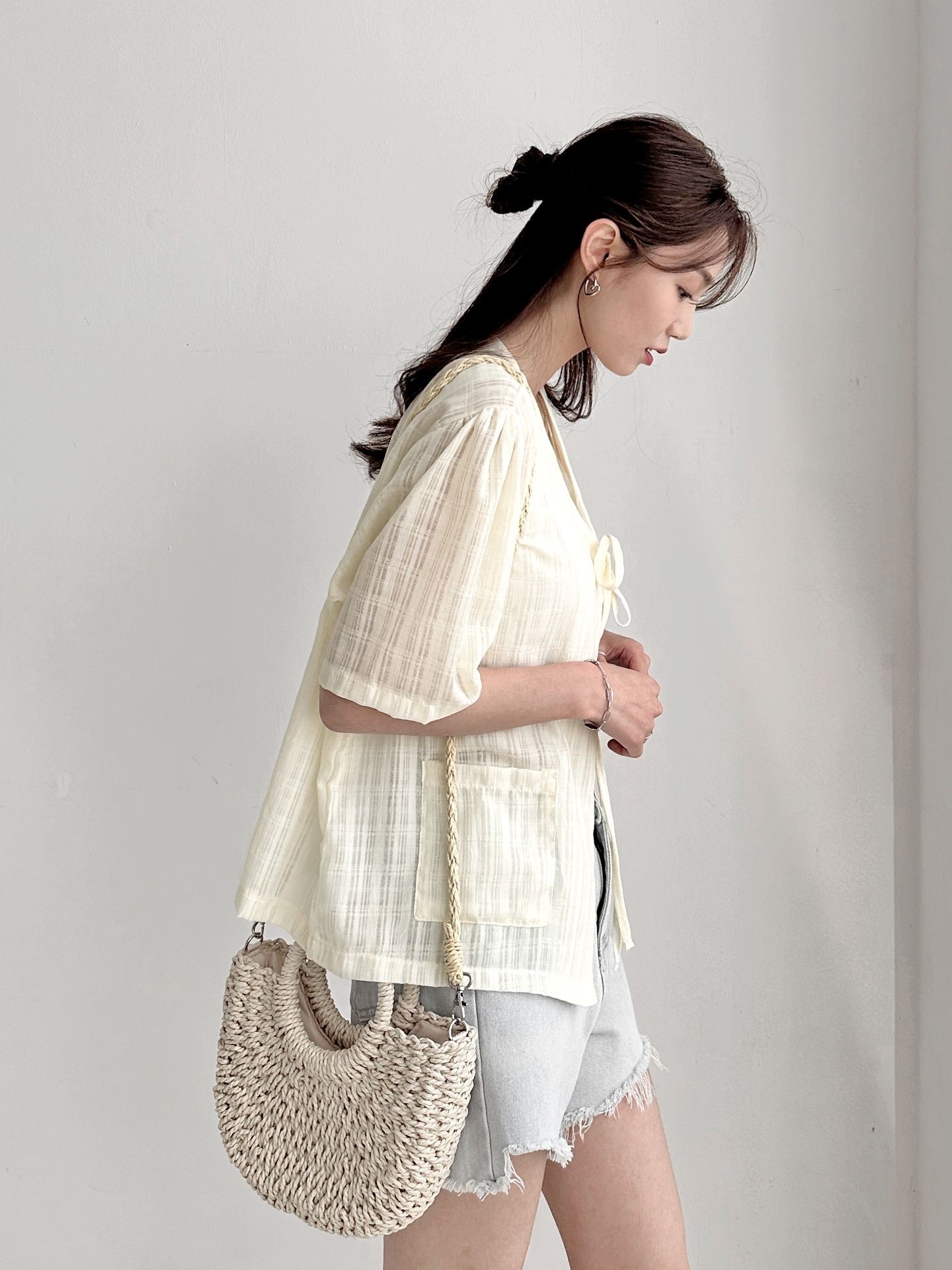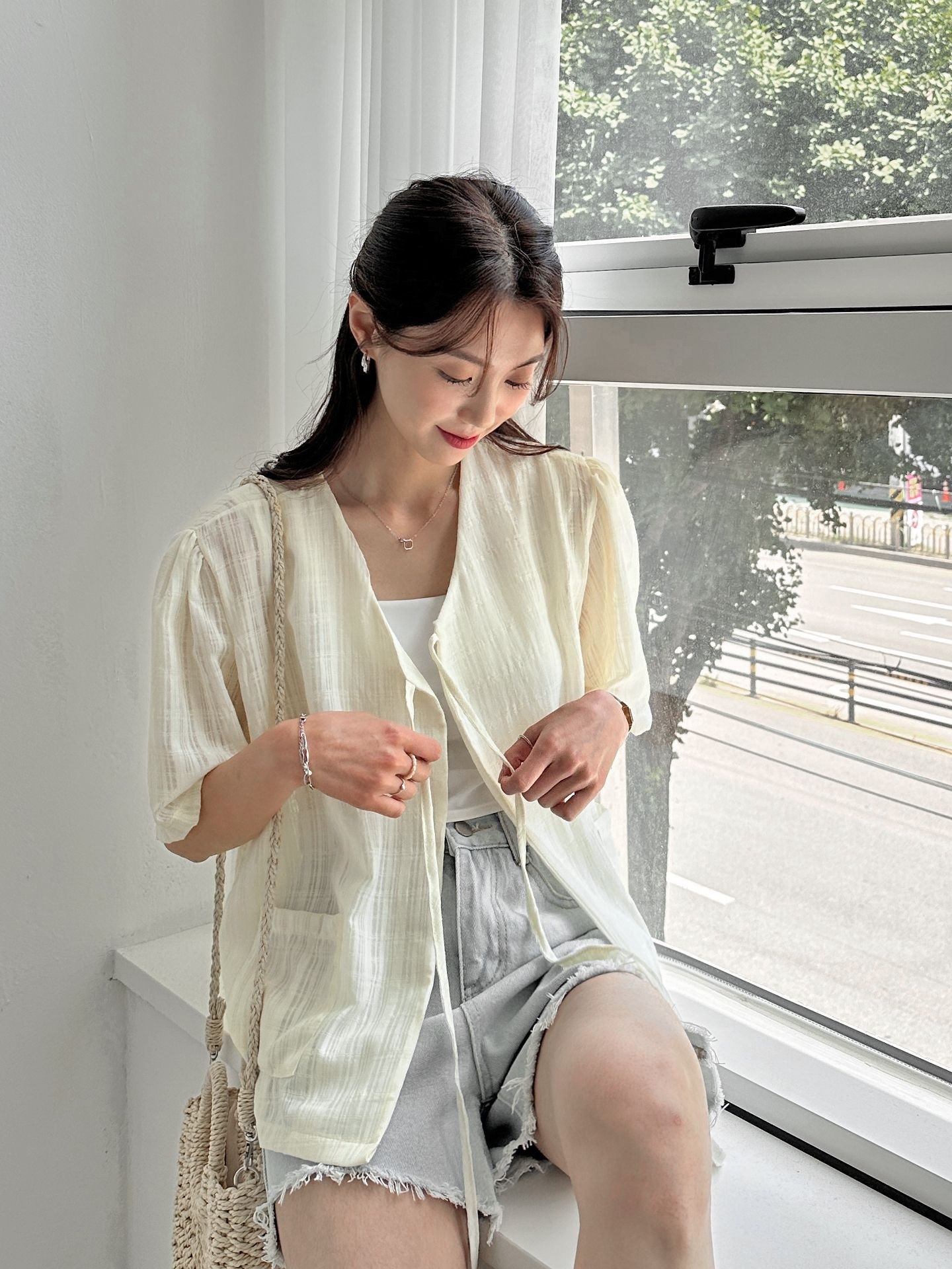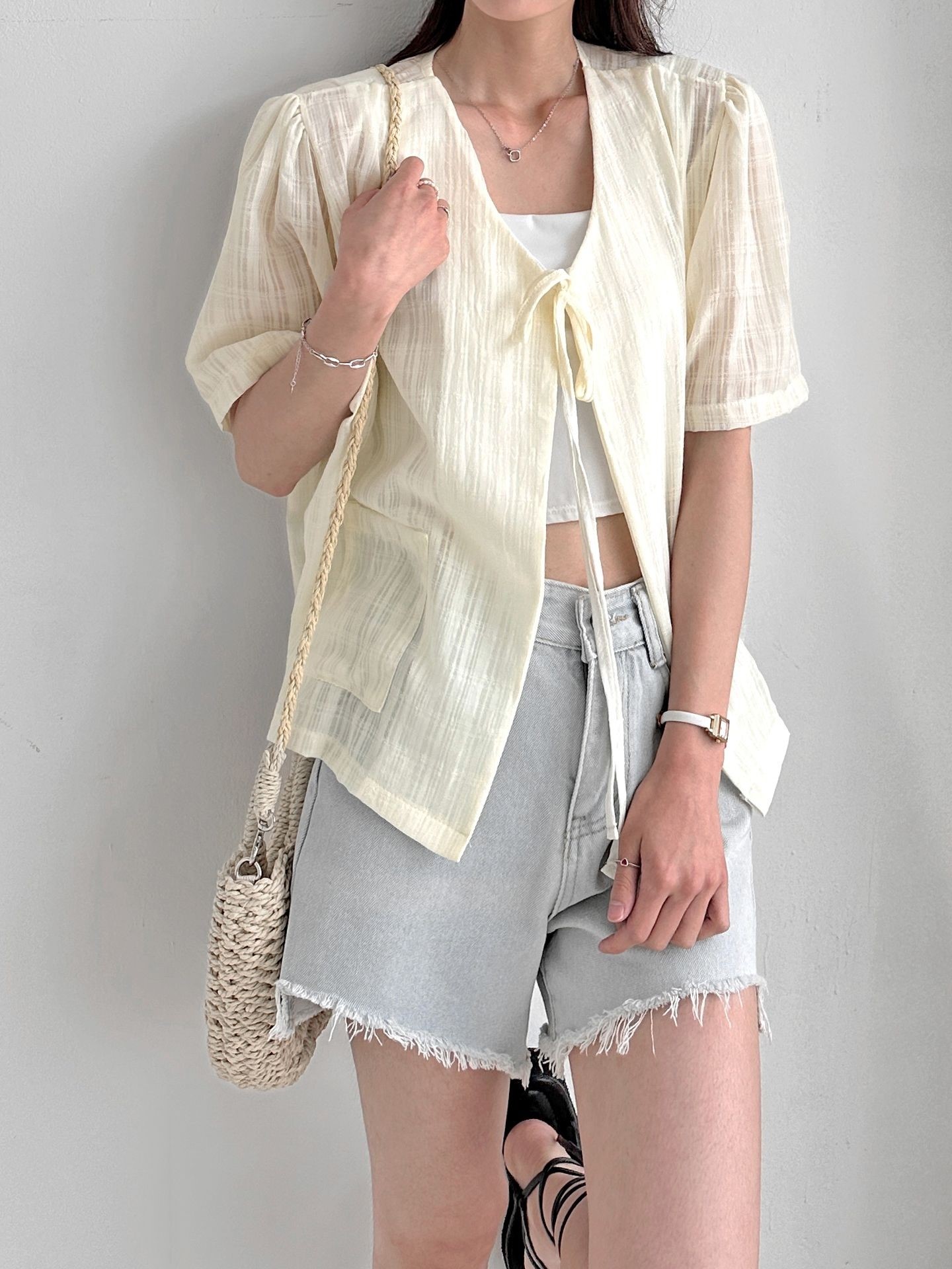 品名:포켓 반팔 가디건 ◎※☞颜色:CREAM, 네이비, 블루 ◎※☞尺寸:FREE ◎※☞材质:纯棉 100% ◎※☞注意事项:只能干洗,只能手洗,不能手洗,机洗,不能使用漂白剂,不能烘干,不能熨烫,不能曲折 翻译