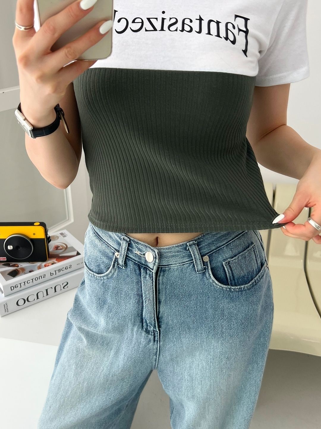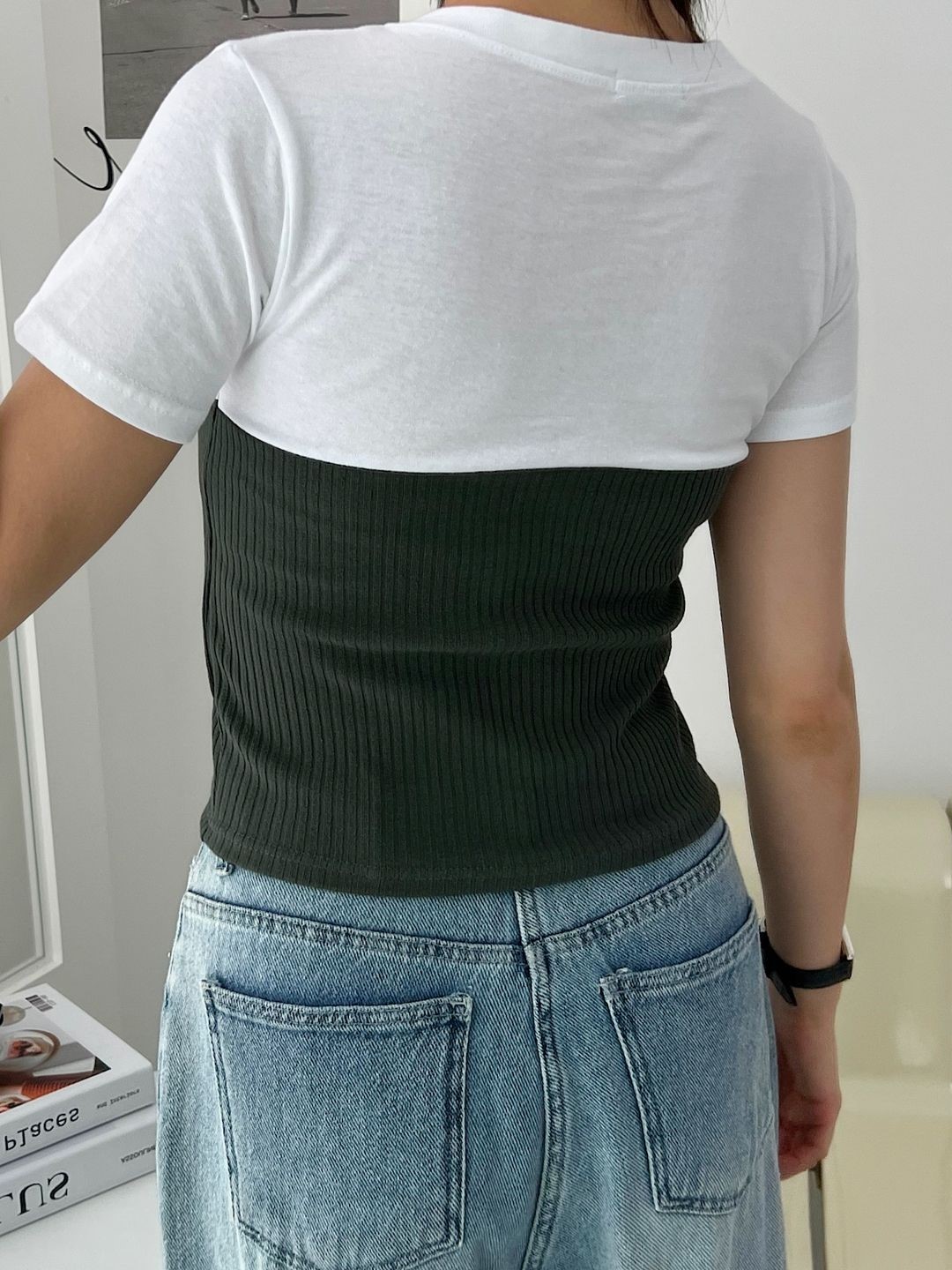品名:클럽배색티 (3color) ◎※☞颜色:베이지, 블랙, 카키 ◎※☞尺寸:FREE ◎※☞材质:스판 5%,聚酯 95% 翻译