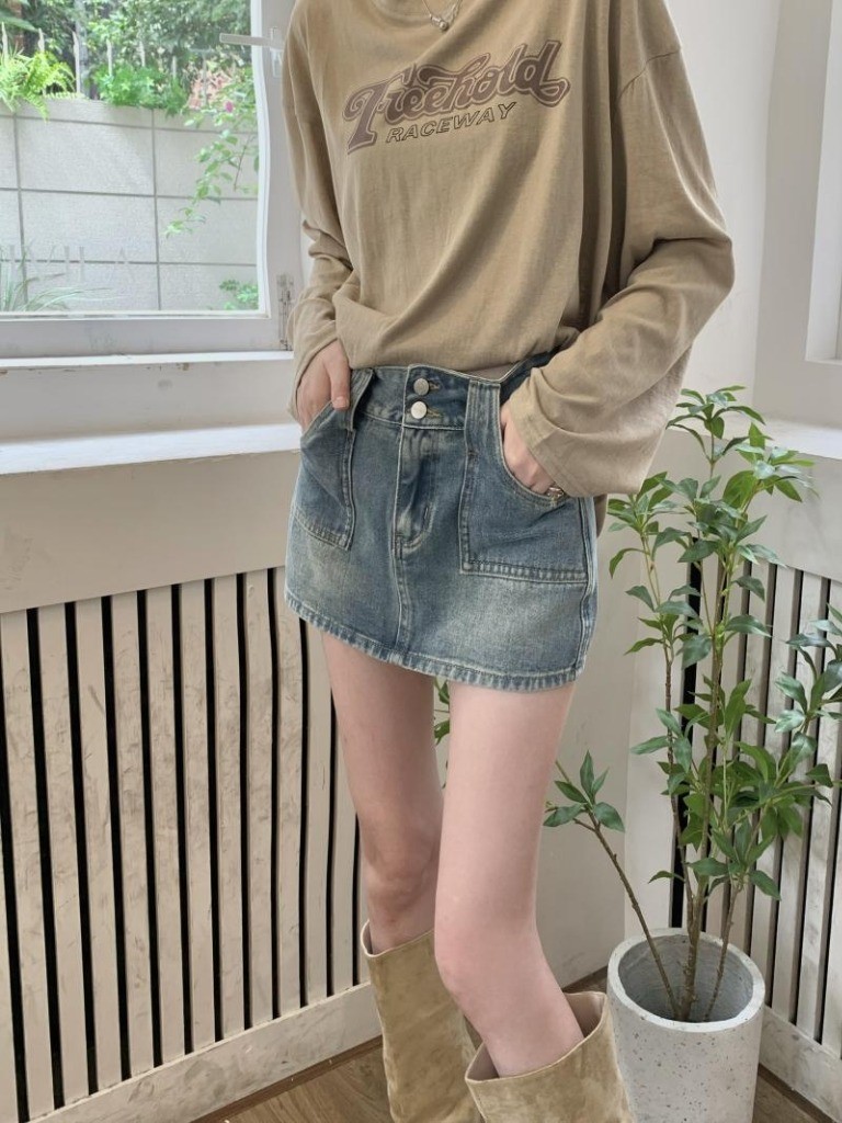 品名:하이웨이스트 데님 미니스커트 ◎※☞颜色:연청 ◎※☞尺寸:L, M, S ◎※☞材质:纯棉 100% 翻译