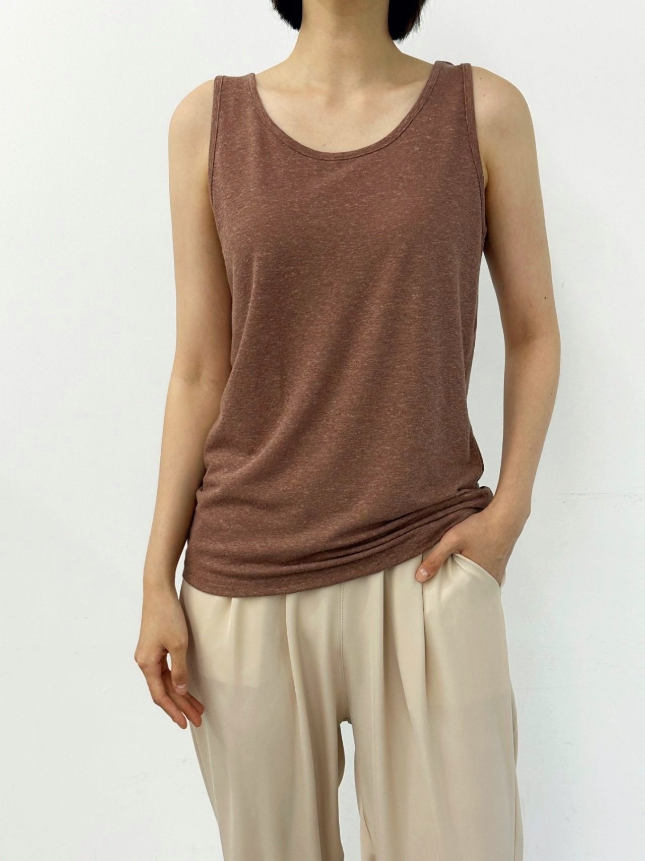 品名:(기획) 린넨 라운드 나시 여름 시원한 민소매 썸머 이너 레이어드 신상 ◎※☞颜色:베이지, 브라운, 블랙, 오트밀, 카키, 화이트 ◎※☞尺寸:FREE ◎※☞材质:聚酯 80%,린넨 20% 翻译