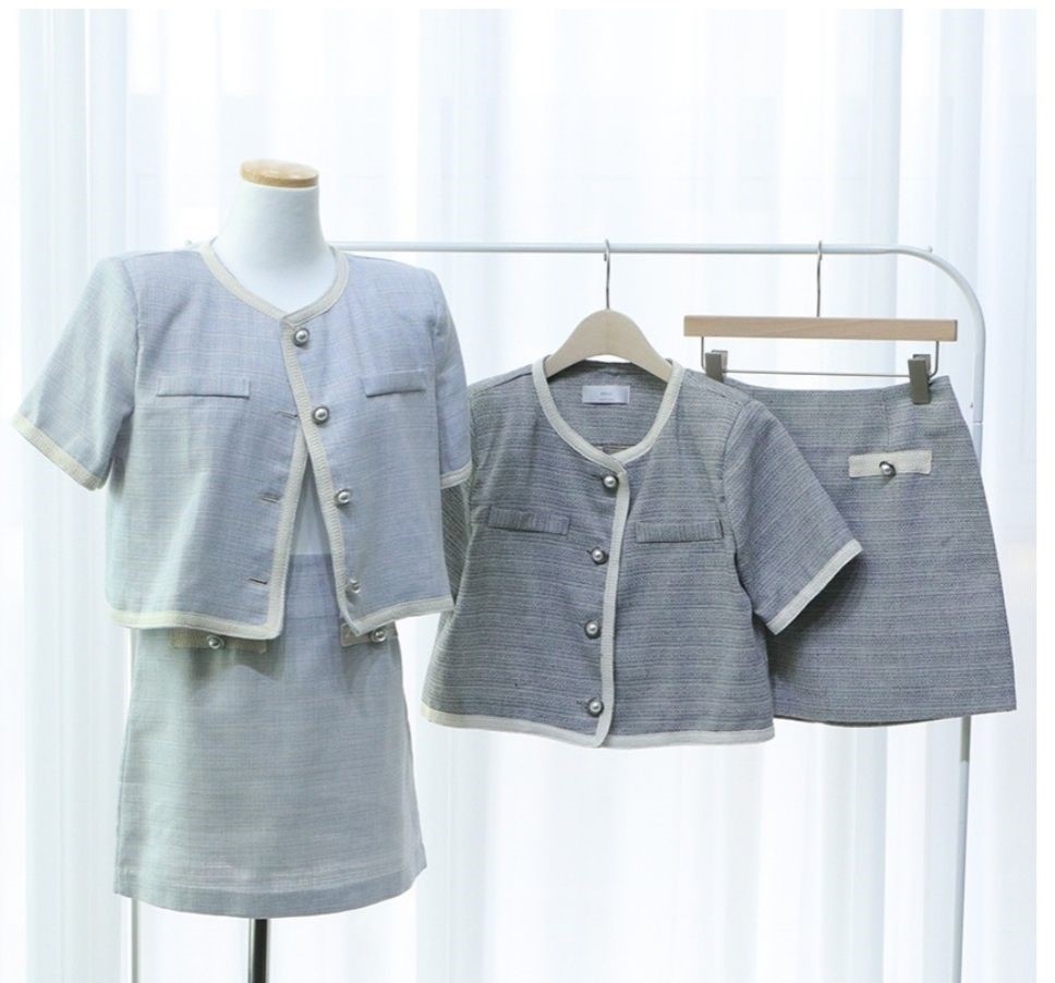 品名:코코세트(set) [투피스 트위드 자켓 스커트 상하세트 데일리룩] ◎※☞颜色:블랙, 소라 ◎※☞尺寸:M, S ◎※☞材质:纯棉 100% ◎※☞注意事项:只能干洗,只能手洗,不能手洗,机洗,不能使用漂白剂,不能烘干,不能熨烫,不能曲折
