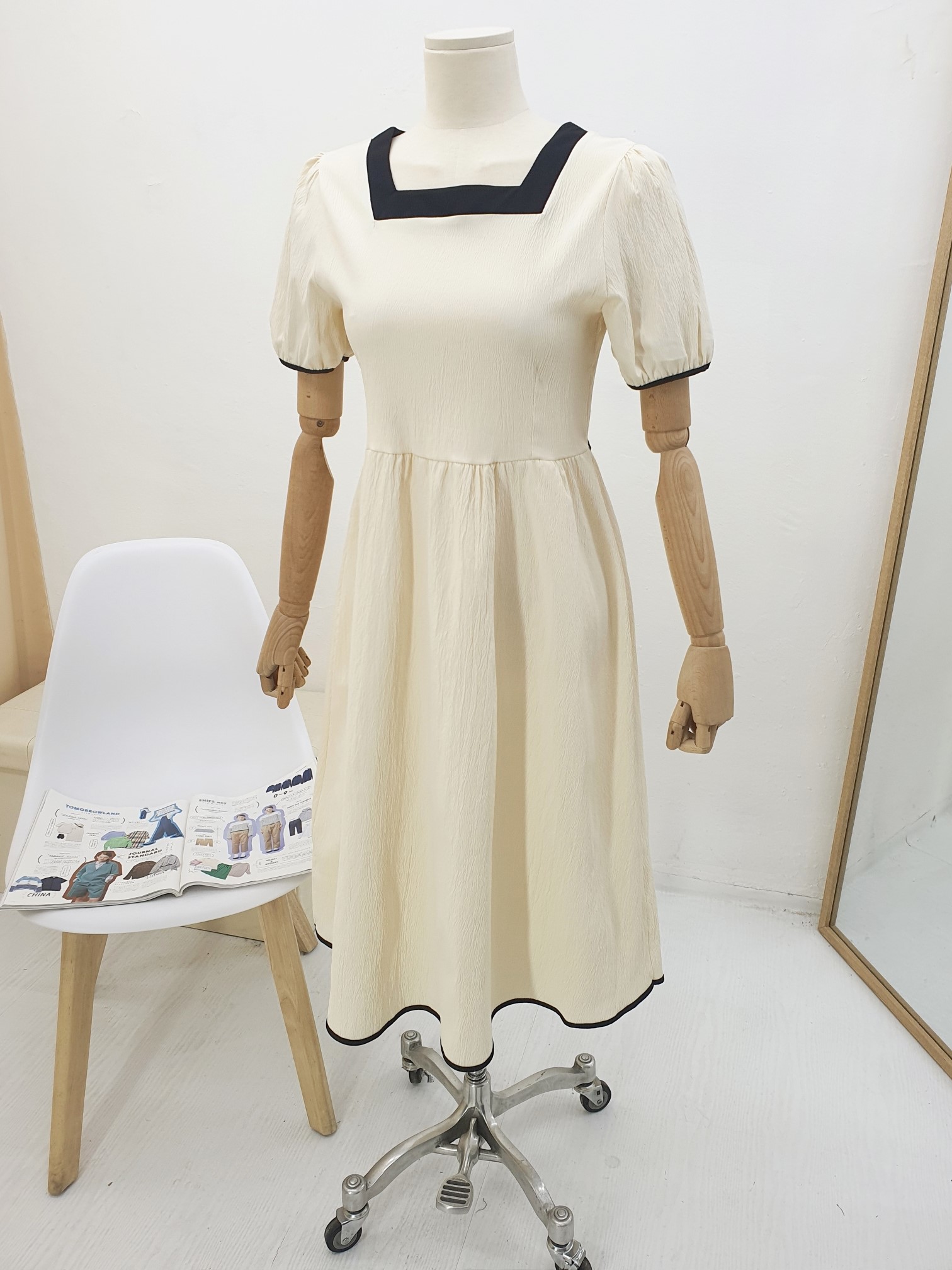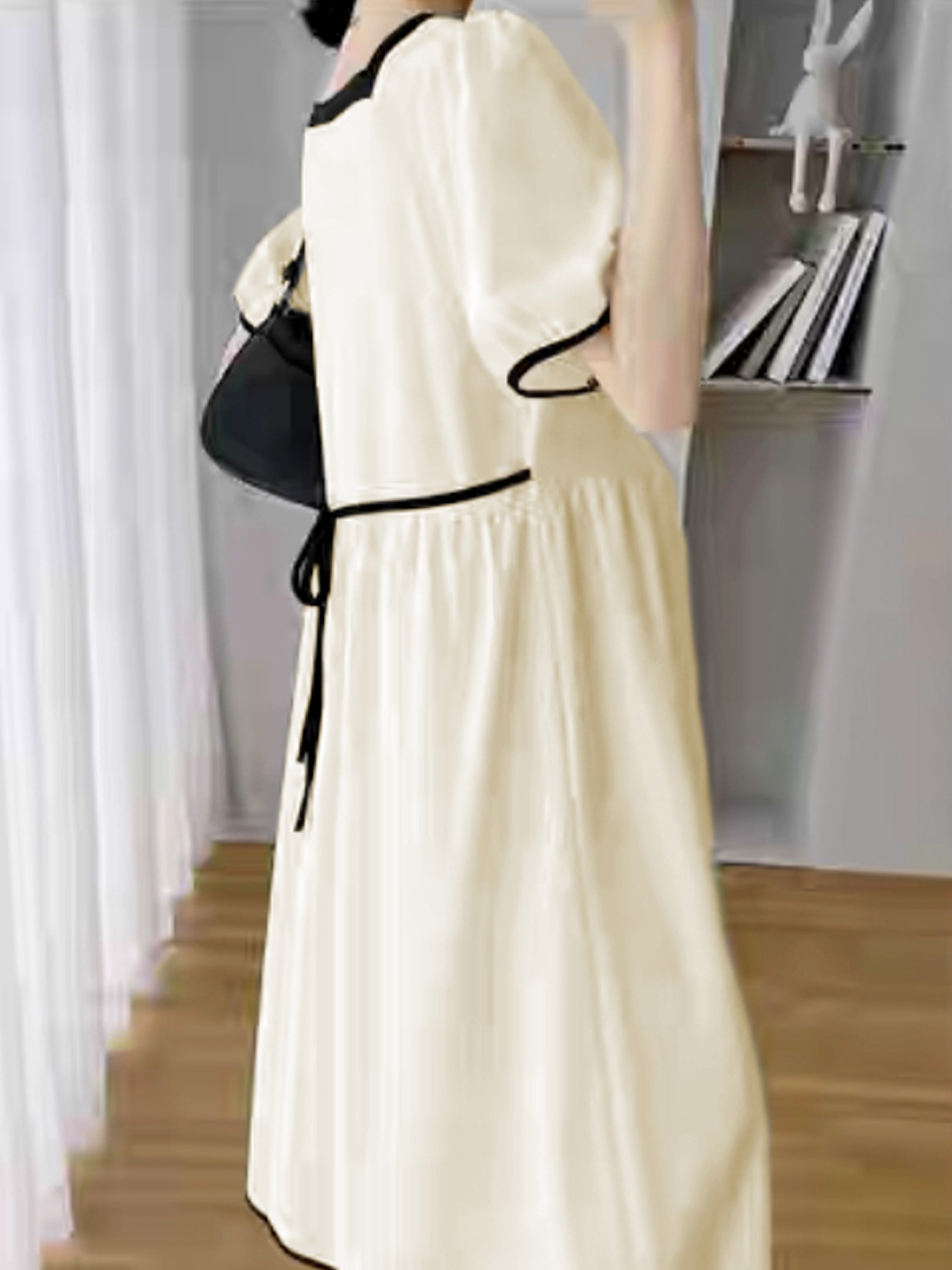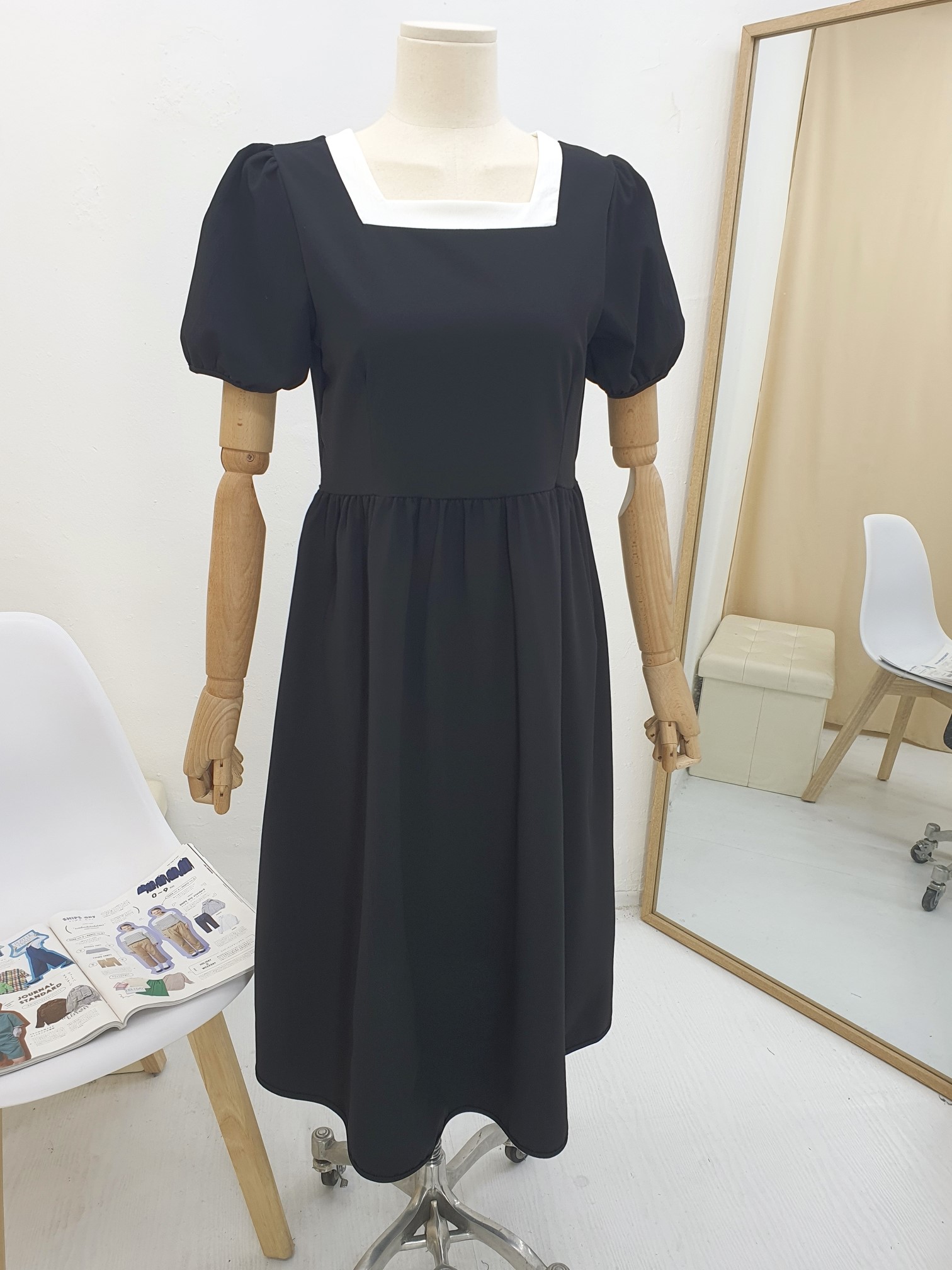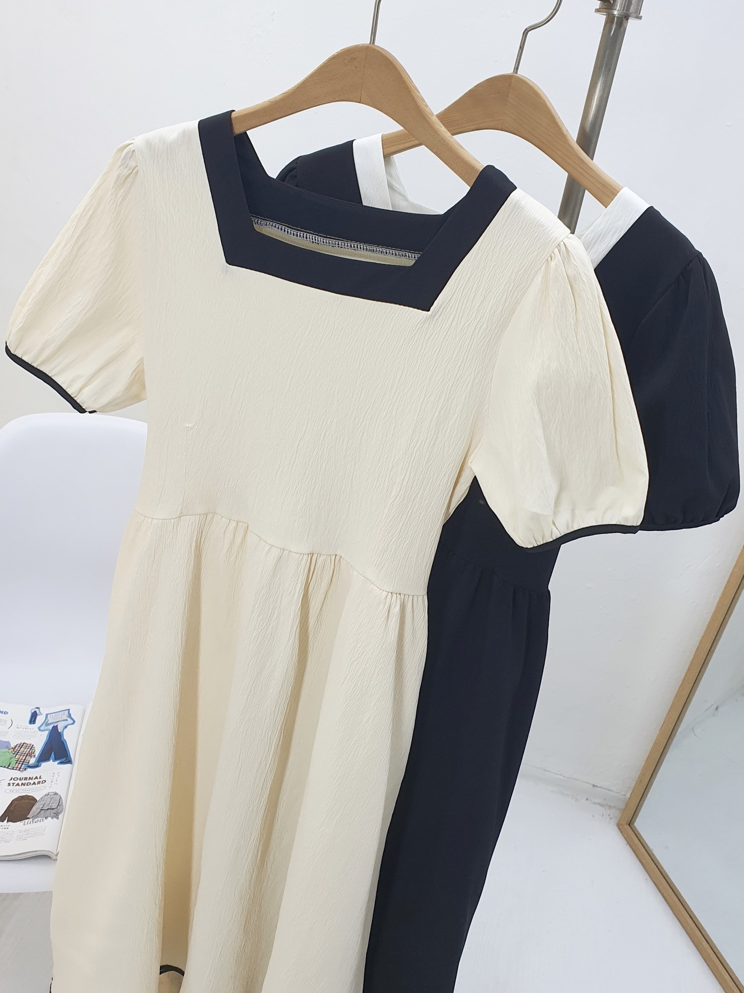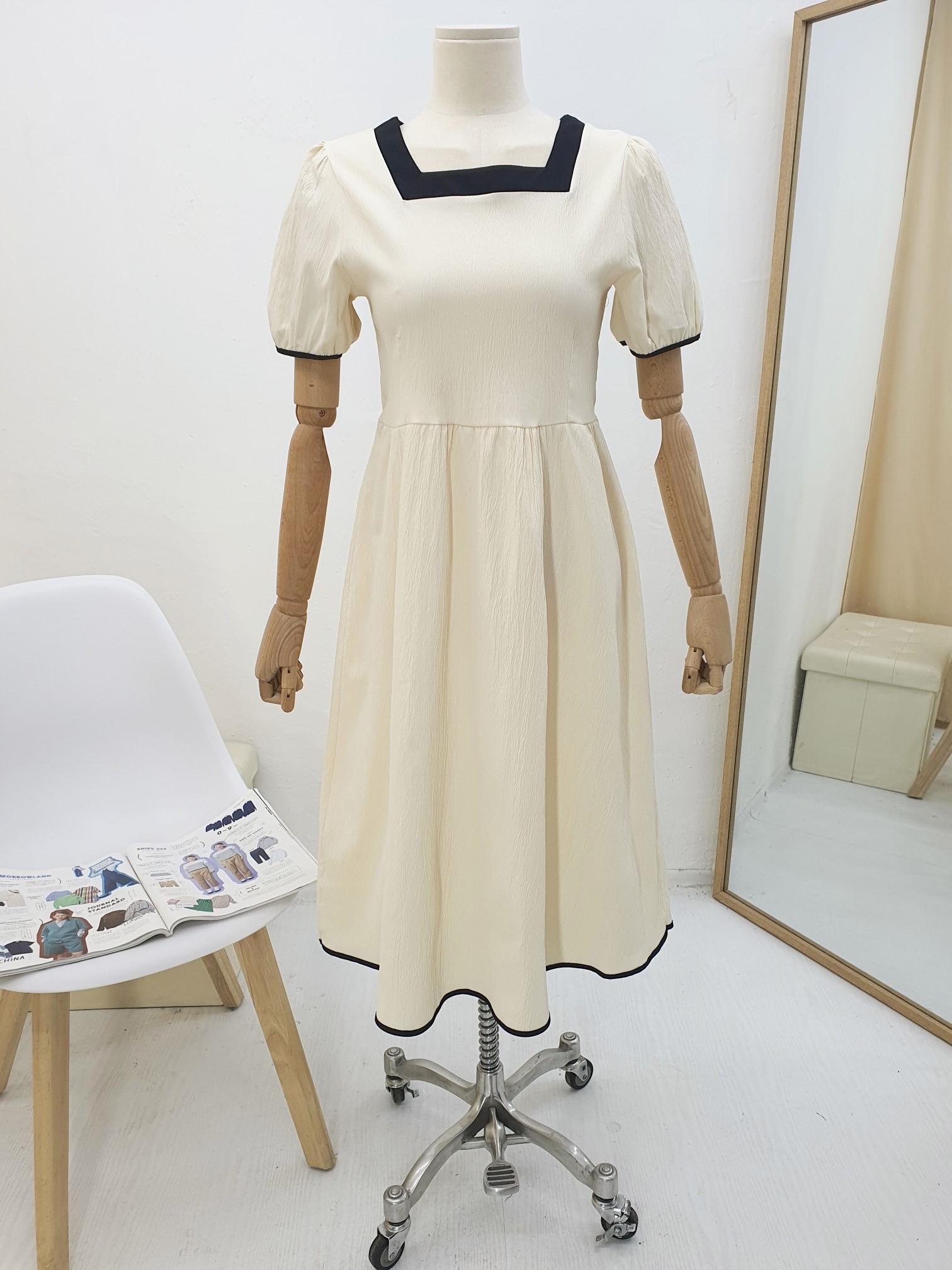 品名:(신상)8026#랍바배색스퀘어넥롱원피스 ◎※☞颜色:베이지, 블랙 ◎※☞尺寸:FREE ◎※☞材质:聚酯 100% 翻译