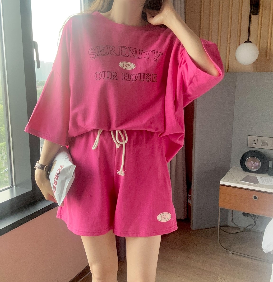 品名:하우스세트 투피스세트 홈웨어 ◎※☞颜色:백염, 블랙, 핫핑 ◎※☞尺寸:FREE ◎※☞材质:纯棉 100% ◎※☞注意事项:只能干洗,只能手洗,不能手洗,机洗,不能使用漂白剂,不能烘干,不能熨烫,不能曲折