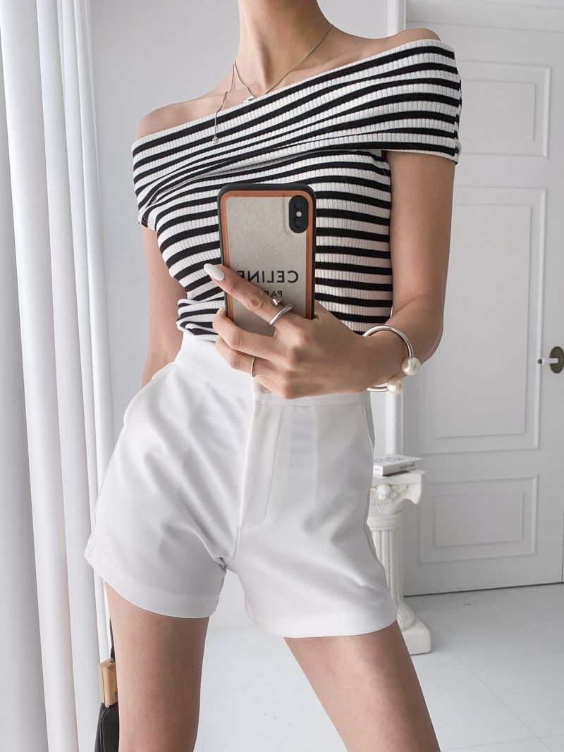 品名:베이글오프티 #여름신상 티셔츠 나시티 단가라티 스트라이프 오프숄더 슬림핏 골지티 데일리 ◎※☞颜色:그린, 블랙 ◎※☞尺寸:FREE ◎※☞材质:스판 5%,纯棉 95% ◎※☞注意事项:只能干洗,只能手洗,不能手洗,机洗,不能使用漂白剂,不能烘干,不能熨烫,不能曲折