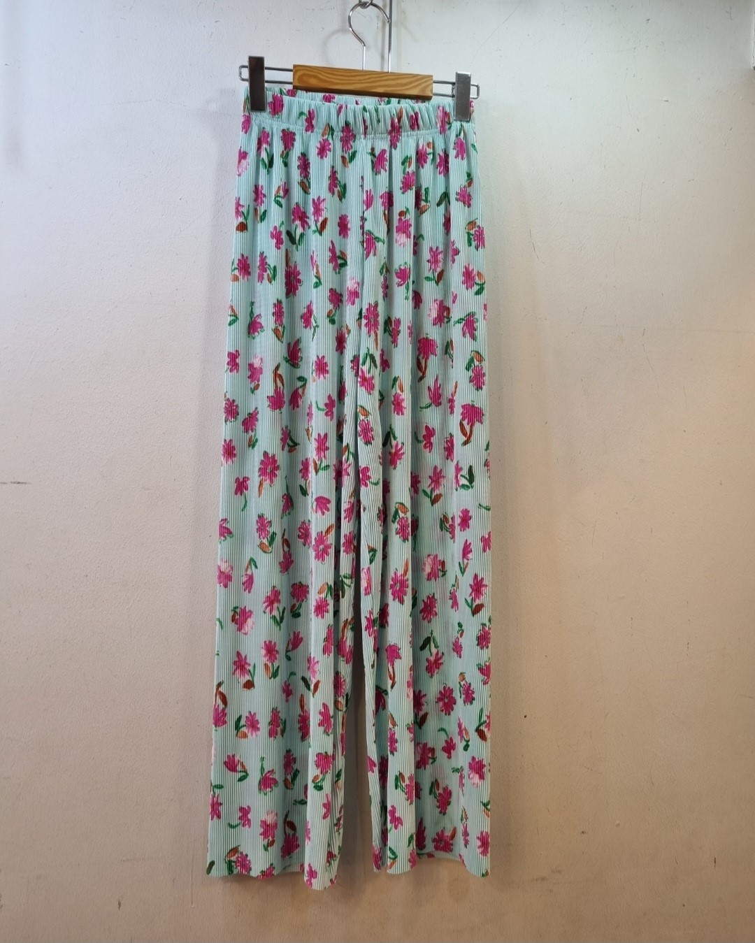 品名:플리츠 플라워 밴딩 바지 ◎※☞颜色:민트, 베이지, 블랙 ◎※☞尺寸:FREE ◎※☞材质:聚酯 100%