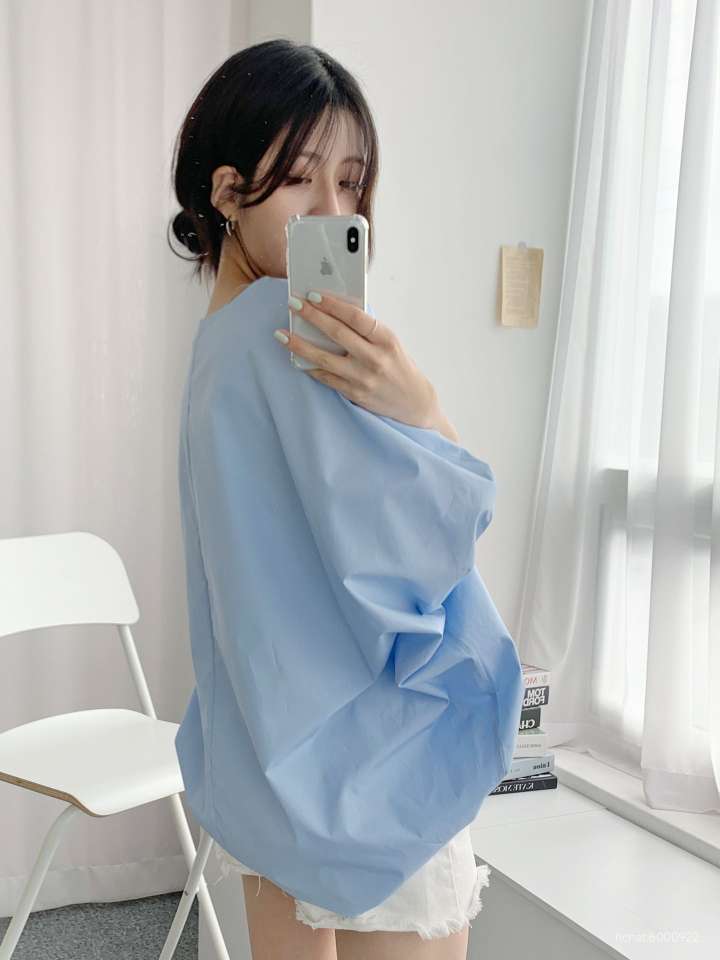 깔끔한 무드의 남방으로~ 사이즈 구애없이 누구나 독특한 스타일의 가오리핏으로 예쁘고 편하며 어깨선이 따로 없어 자연스럽게 떨어지는 라인이 여리여리한 핏을 만들어주며 카라가 없는 브이넥에 중앙 버튼으로 스타일리시한 cotton 100% 원단