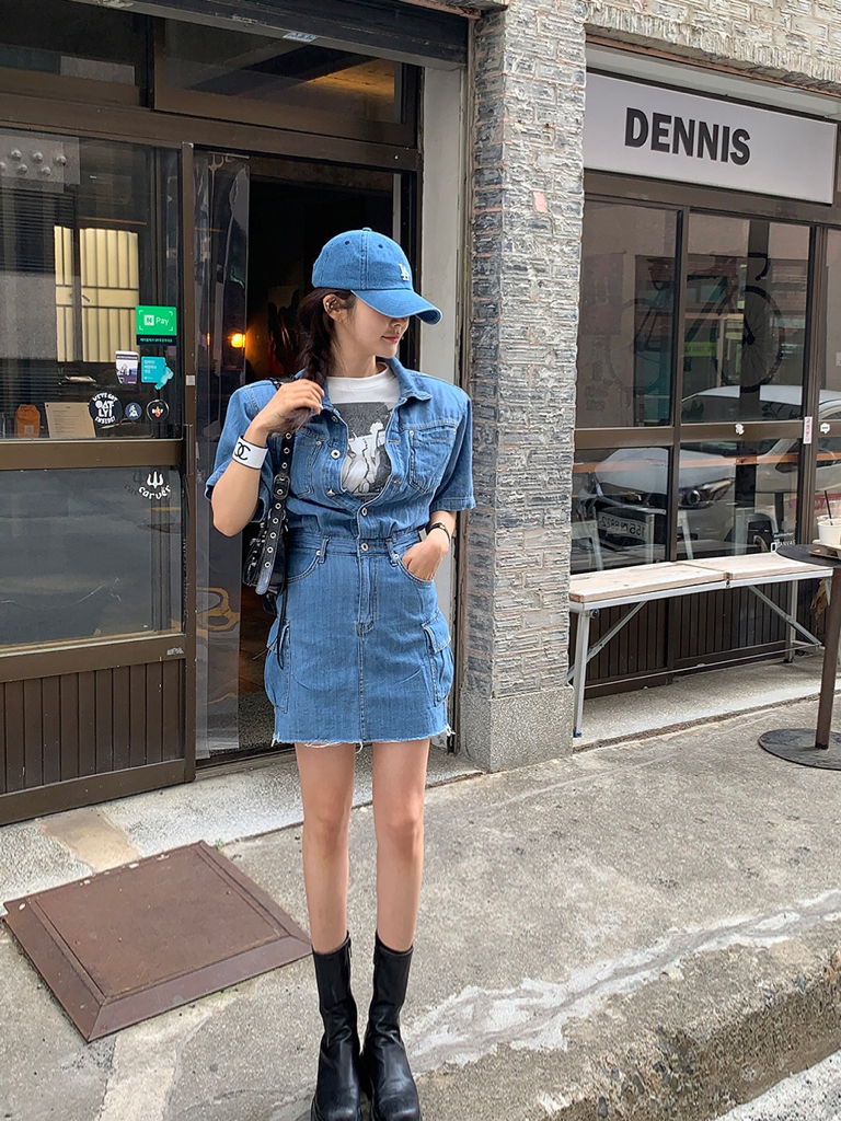 品名:카고청원피스 ◎※☞颜色:청 ◎※☞尺寸:M, S ◎※☞材质:纯棉 100% 翻译
