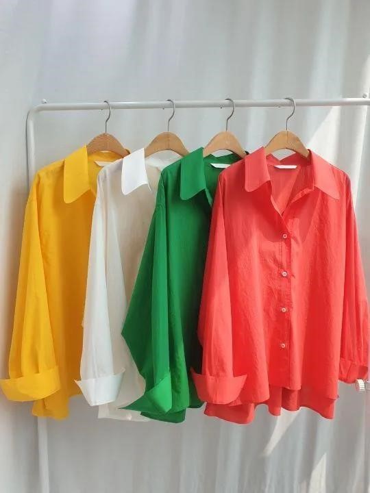 品名:女装衬衫 ◎※☞颜色:화이트,옐로우,네온레드,그린 ◎※☞尺寸:Free